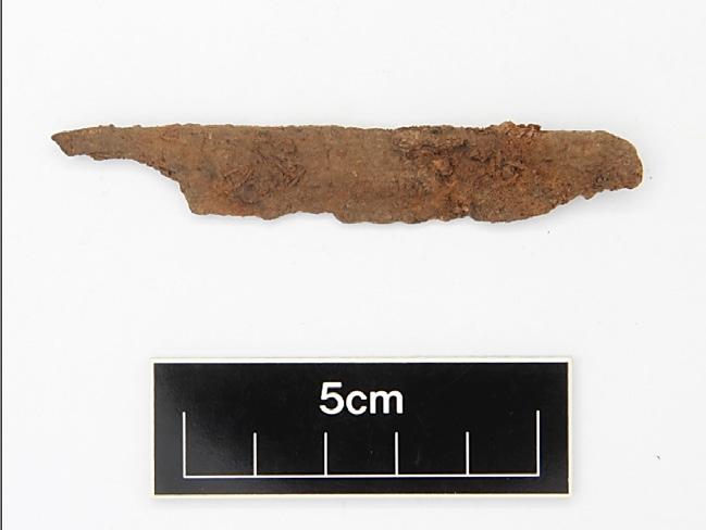 Mynd 23. Handfang af sög (F-1850) sem fannst í könnunarskurði í tóft [2048-11].