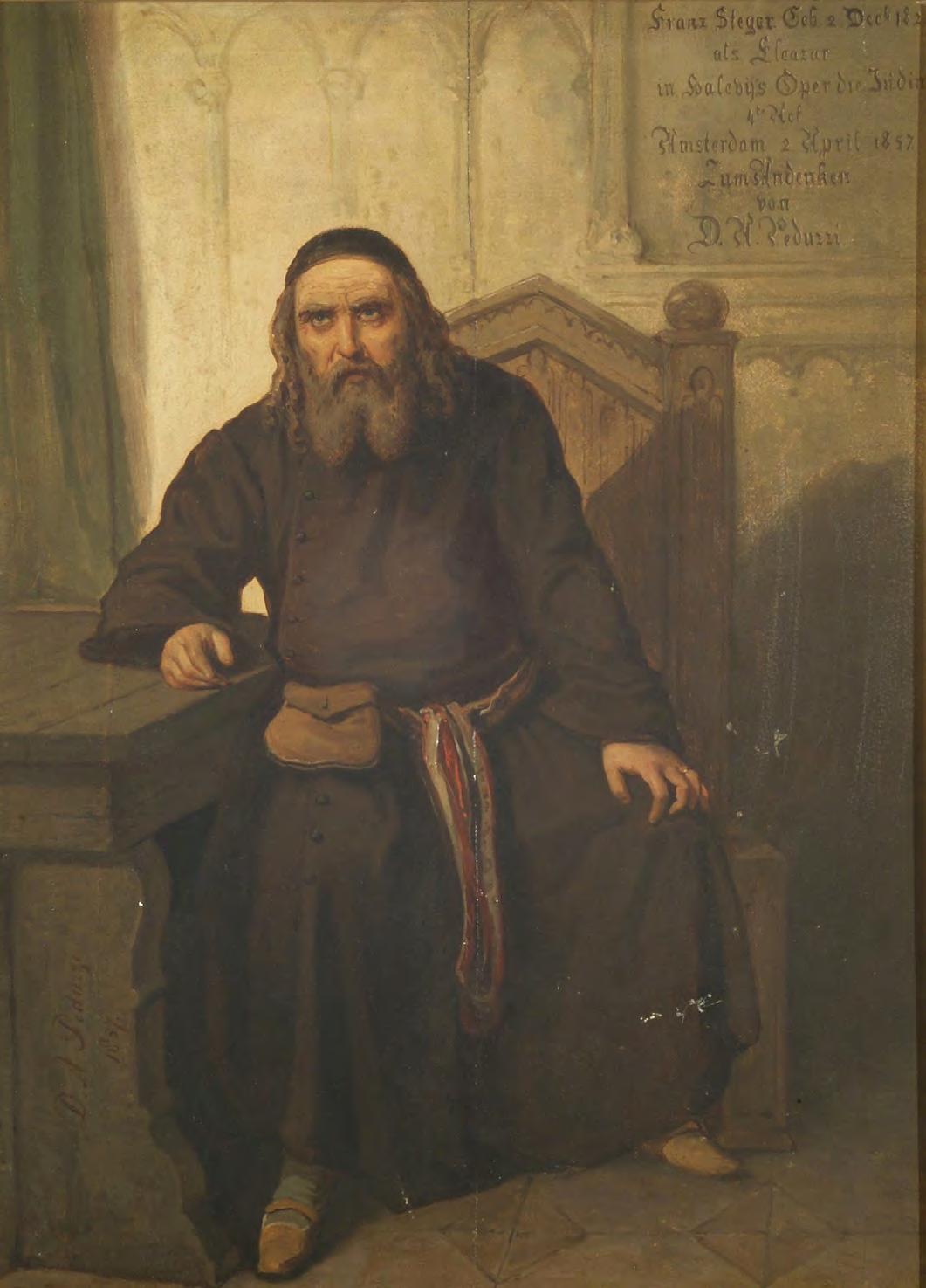 Very soon Stéger started singing lead roles at the National Theatre, and his repertoire included Erkel’s own operas, as well as popular works by Mercadante, Donizetti and Verdi. He sang at the National Theatre for four years, before starting, in 1852, a decades-long career as a guest performer abroad: first employed in Prague, in 1853 he went to Vienna, where he appeared mostly on the stage of the Kärntnertor. The 1850s saw him reap success in Amsterdam (where his oil portrait was painted by Domenico Peduzzi), Utrecht, Munich, Darmstadt (where he was decorated by Louis III, Grand Duke of Hesse ) and Hamburg.