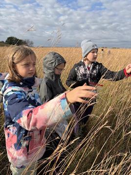 Students hiked out on the prairie to discover the enormity of the large cottonwood tree at PWLC and the details in the prairie grasses.