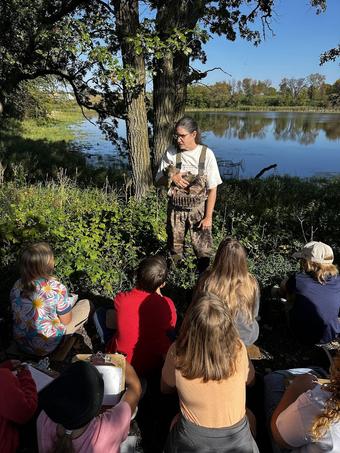 Prairie Science Class students learned about duck banding and observed USFWS staff demonstrate how ducks are captured, banded, and released.
