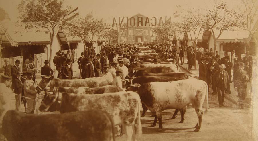 [ Bovinos shorthorn en el predio de la Sociedad Rural Argentina, en Palermo. Circa 1902. Fuente: Archivo General de la Nación. Recopilación: Editorial Ferias & Congresos.