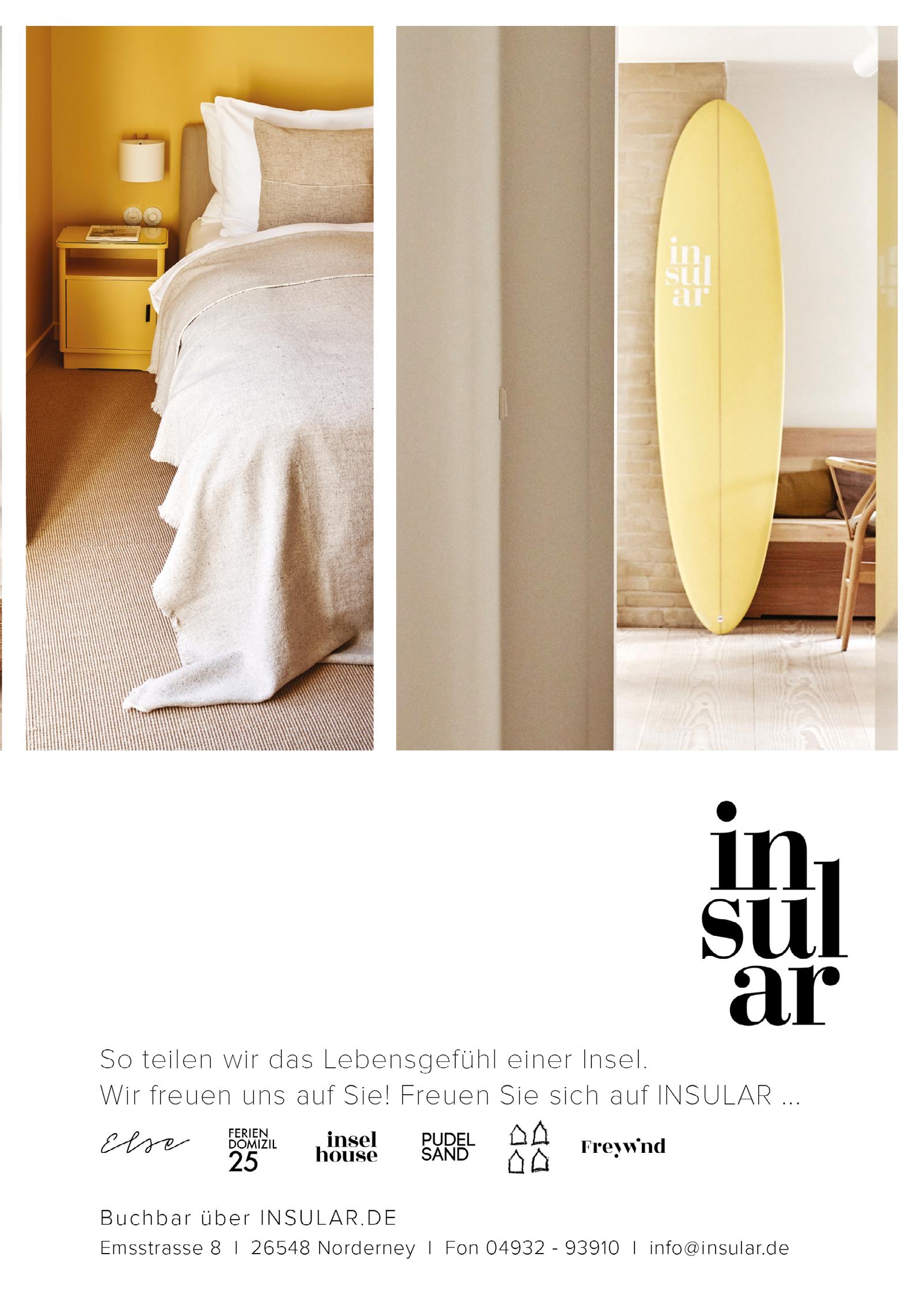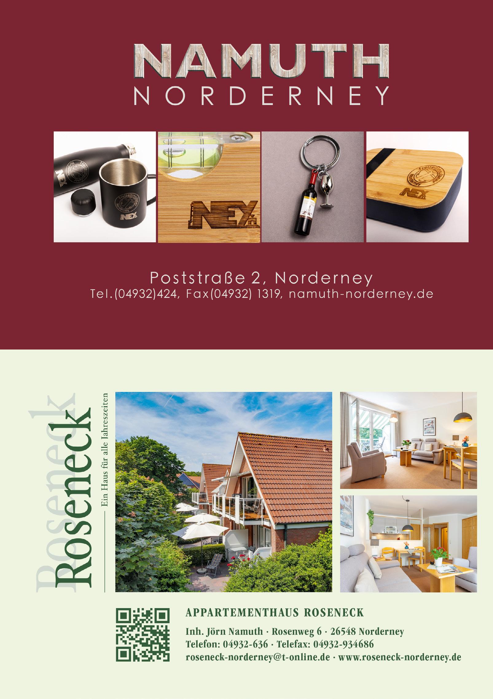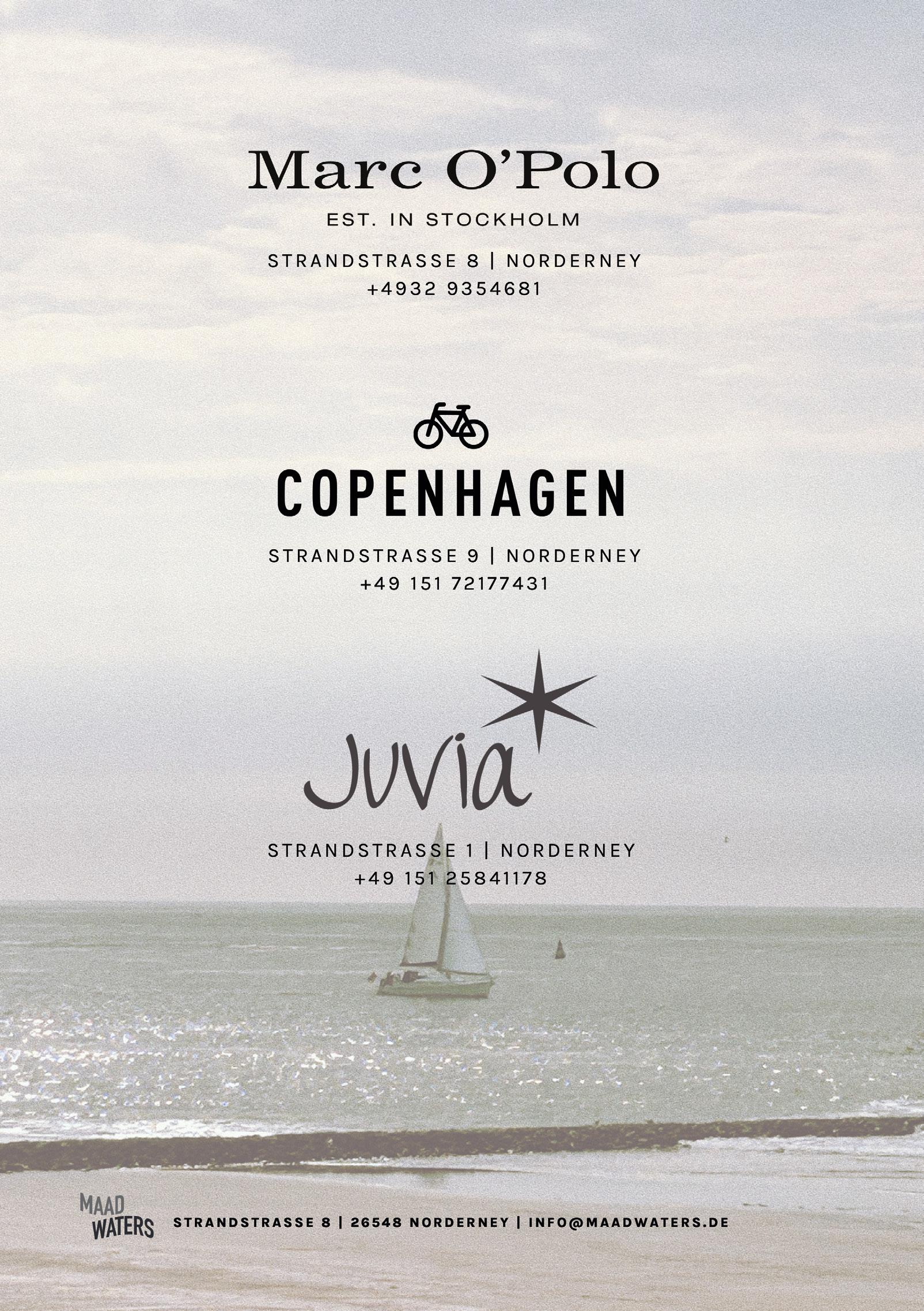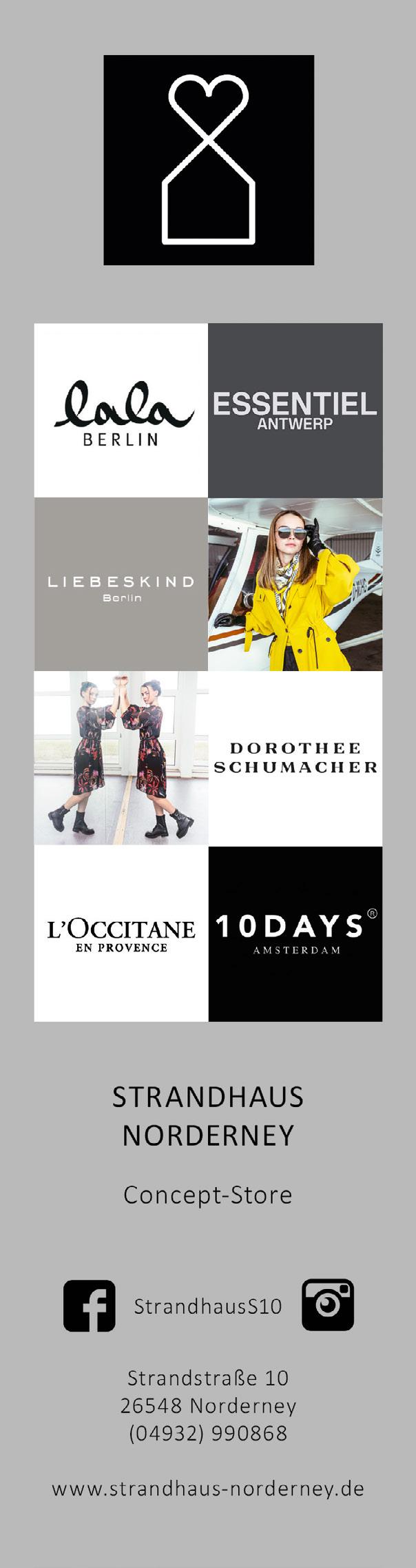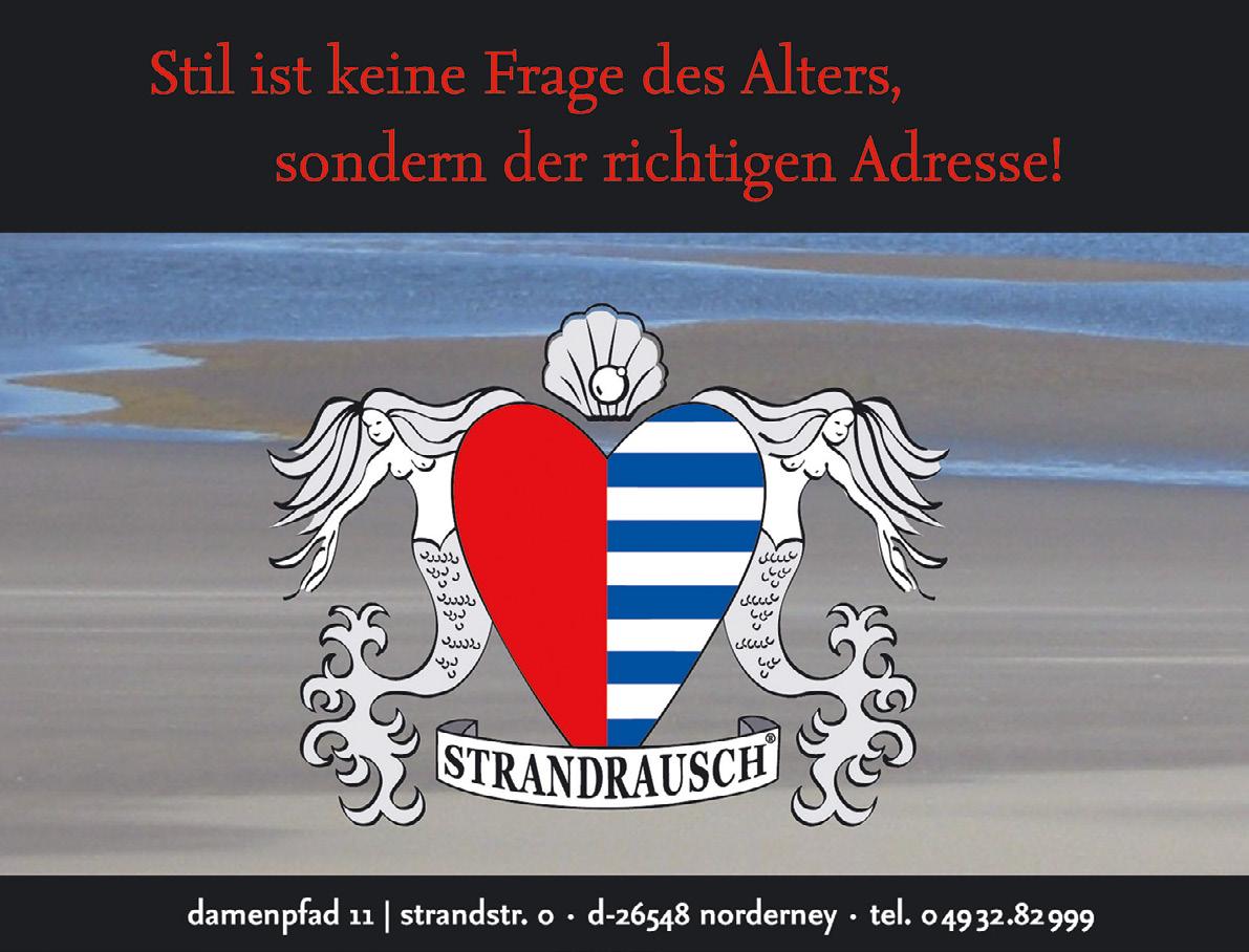 303 155 Adenauer & Co. 102 Albert Wilts 098 Alt Norderney 216 Alte Druckerei 079 Amici 100 Andre's Restaurant 212 Anke Onke-Fritsching 232 Apartmenthaus B3 160 Atelier Waterkant 166 B&B klein aber fein 273 Bademuseum 179 Berghaus 170 Bethke Inselbäckerei 285 Bömmelbahnen 145 Brandung Norderney 169 Buddelkontor 278 Caritas 176 Combi Markt 148 Copenhagen 088 Cornelius mediterran 281 crehaartive 228 Creutzenberg 081 Da Sergio 085 de Leckerbeck 239 Dr. Theissen Immobilien 101 Düne 13 209 Engel & Völkers 170 EP Rosenboom 164 Ernstes Design 169 Fellmonster & Co. 226 ferien-auf-norderney.de 235 Ferienhaus Papenfuß 077 Fischerkate 095 Fischgeniesserei 290 freizeit-norderney.de 165 Freunde der Sonne 082 Friedrich 220 Friesenhuus 092 Fritsching's 150 Gabor 174 Garrels 103 Giftbude 099 Gran Cafe Veneziano 084 Gute Stube 091 Haus am Meer 236 Haus an den Dünen 231 Haus Elimar Weber 236 Haus Gerrelts 230 Haus Margarete am Meer 214 Haus N Norderney 234 Haus Tiemann 229 Haus Weitblick 147 Hein & Hutsie 234 Heise RegioConcept 143 Henken 177 Hol'ab! 149 Hollbach 213 Hotel Aquamarin 205 Hotel Ennen 230 Hotel Friese 213 Hotel Haus Norderney 219 Hotel Künstlerhaus 215 Hotel Misan 232 Hotel Paula 286 Ihr HaarKonzept 217 Inselbuden 211 Inselhotel Bruns 158 Inselkoje 091 Inselloft 172 Inselstoff 005 insular 307 Jann von Norderney 284 Julia Ristow 148 Juvia 154 Juwelier Götting 156 Juwelier Hahn 152 Juwelier Holtmann 094 Kaffeegeniesserei 222 Kleemann Apartmenthäuser 096 Köhn 173 Konken 275 Kranich 165 Krebs am Meer 306 Kunsthalle Emden 093 Kurpalais 274 Kurt's Fahrradshop 216 Lengerhuis 142 Lingerie am Meer 227 Logierhaus 178 Luttmann 153 Mannefeld 148 Marc O'Polo 086 Marienhöhe 150 Medebach 286 Medikos 092 Meer Waffel 210 meerconcepte 006 Meerloft Norderney 140 Meermode 157 Moderaum 287 MP mooi 144 Munke & Skerhut 233 Namuth Norderney 285 Naturheilpraxis Rass 176 ney360° 214 neyloft.de 078 neysPlace 288 NeyTaxi 223 Nicky's Apartment 098 Norderneyer Bier 105 Norderneyer Inselwein 168 Norderneys Konditorei 169 Norderneyer Zuckerhuus 287 Nordfelle 089 Oktopussy 225 OLB Immobilien 174 Onnen 100 Pesto Pesto 283 Physiotherapie Schreiber 284 Physiotherapie Schulze 163 Plan'N 151 Quadro 104 RadToni Café 221 Raumfabrik Norderney 289 Reisebüro Norderney 280 Reitschule Junkmann 171 Rosenboom 233 Roseneck 282 Salzoase 002 Sanddorn-Stübchen 167 Schmidt 097 Schmuggler 237 Simone Hettling 181 Solaro 218 Soltausche Ferien 175 Spedition Fischer 175 Spedition Janssen 279 Spielbank 165 Stadtwerke 146 Strandhaus S10 207 Strandhotel Georgshöhe 238 Strandrausch 172 Strandtag 178 Suhrkamp 150 Surf + Fashion 087 Surfcafé 276 Surfschule Norderney 161 Tee-Ambiente 161 Thalia 141 Tommy Hilfiger 139 Tommy Jeans 238 Tu Casa Immobilien 156 Ulla Popken 096 Um Süd 224 Vermietservice Krebs 084 Villa Breeksee 083 Villa Meeresrauschen 206 Villa Westend 237 Visser & Döring 162 Warnkens Gedöns 277 Watt Welten 180 Wein & 308 Wurst & Schinken Deckena INSERENTEN