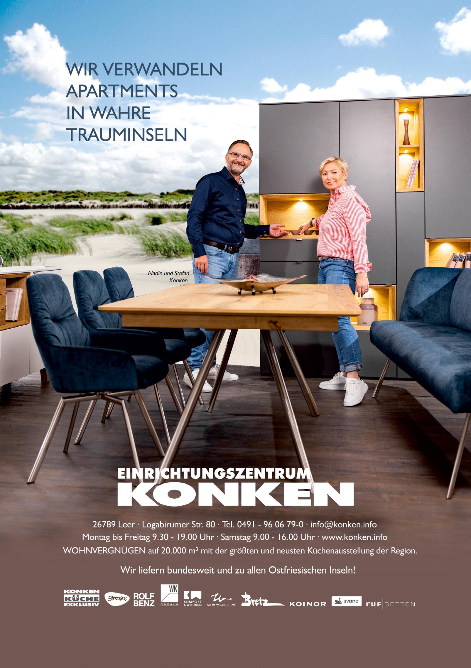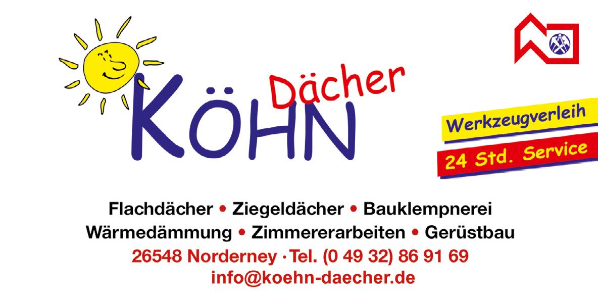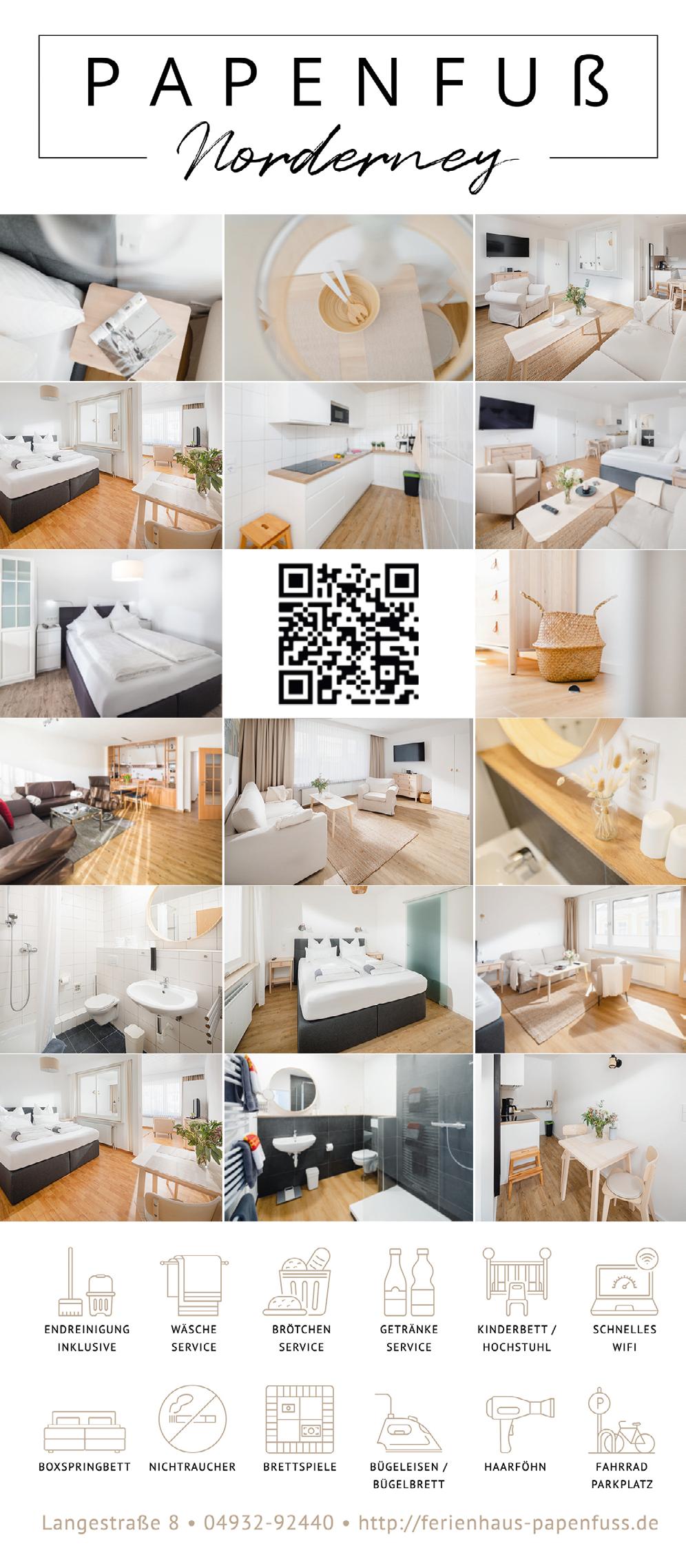 182 Ferienhaus Naase 187 Georgshöhe 191 Onkes-Fritsching 192 Medienmix 197 Faldern Immobilien 200 Besondere Bauten 202 Raumfabrik 204 Adressen FREIZEIT. 240 Summertime 245 Reiner Will 249 Wir:So! 250 MP mooi 252 Strandmusik 259 Julia Ristow 260 Musikfest 263 Watt Welten 264 Surfschule 266 Mario Dirks 269 Beauty Room 270 Bademuseum 272 Adressen OUTRO. 293 Kunsthalle Emden 294 Haldern Pop 298 Register 301 Inserenten 302 Kontur & Profil 305 Stadtplan 306 Impressum @ahoi_norderney spotify:user:ahoinorderney facebook.com/ferien.ahoi.norderney