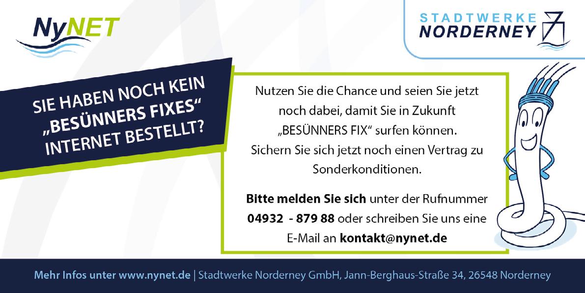 Wilhelm Loth hat gemeinsam mit Ludger Abeln einen Podcast namens "He! Norderney" gestartet // der Norderneyer Chor "Neue Ostfriesische Welle" (NOW) verströmt Spaß am Singen mit Seeliedern aller Art // auf unserem bevorzugten Parkplatz C an der Mühlenstraße öffnet sich die Schranke jetzt per Nummernschilderkennung wie von Zauberhand automatisch, nachdem man bezahlt hat // in der ARD Mediathek läuft eine Dokumentation über Jungunternehmer und Jungunternehmerinnen auf Norderney //
