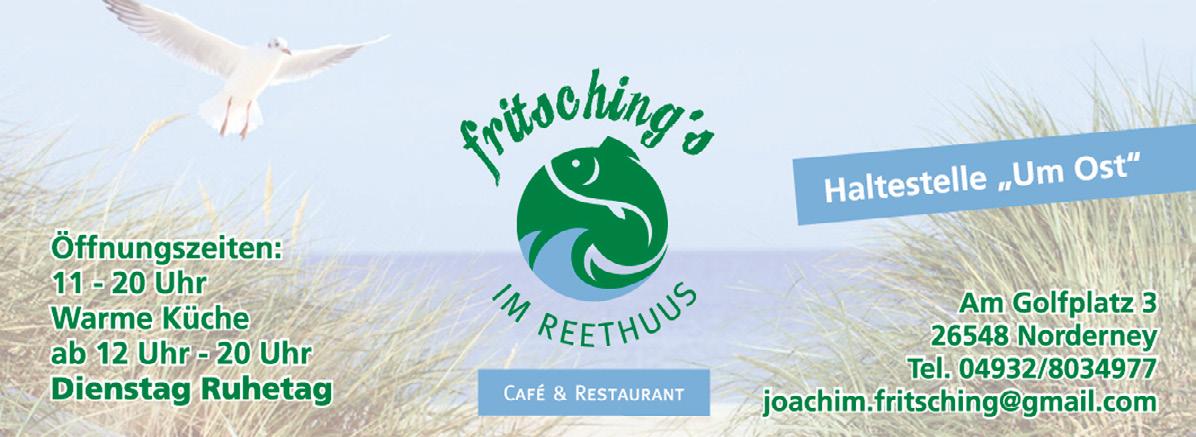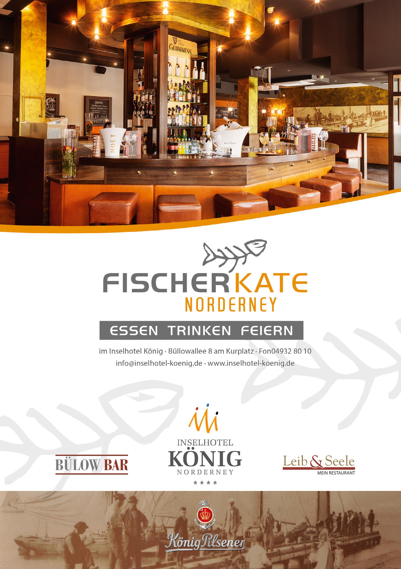 278 Fischpresse 289 FLN - Die Inselflieger 102 Flughafen Restaurant 289 Flugplatz Norderney 099 Freddi's kleine Kneipe 281 Freiraum 152 Freunde der Sonne