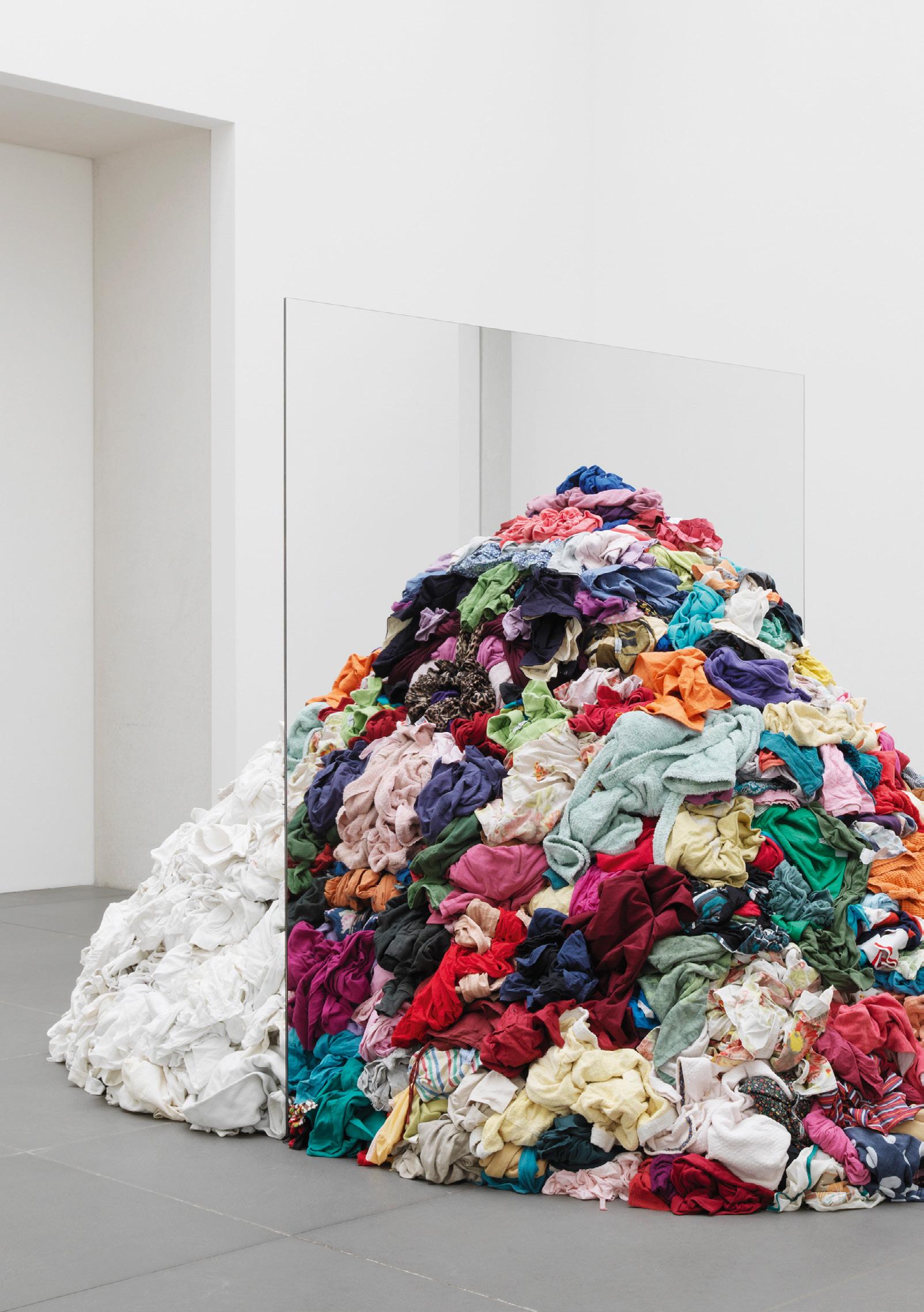 Michelangelo Pistoletto (*1933), Metamorfosi, 1976-2013, Zwei Spiegel, 250 kg, Lumpen (weiß), 250 kg, Lumpen (bunt). Sammlung Kerstin Hiller und Helmut Schmelzer, Leihgabe im Neuen Museum Nürnberg © 2023 Michelangelo Pistoletto / Neues Museum Nürnberg. Foto: Annette Kradisch