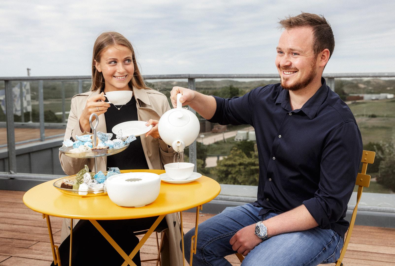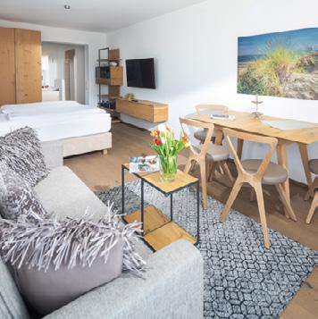 bleibt der Anspruch an Komfort und Aufenthaltsqualität - vom maßgefertigten Mobiliar über kuschelige Betten von Royfort bis zum maximalen Blick auf die Wellen. Wer das natürliche Entspannungsprogramm der Insel noch vertiefen möchte, findet Ruhe im ganzjährig geöffneten Spa - mit finnischer Sauna, Bio-Sauna, Ruheräumen und kleinem Außenbereich. Die Lobby im 1884 Norderney nennt sich Plauderei. Der Name ist Programm. Ob für eine Tasse Tee vorm Kamin, für ein gutes Buch im lichtdurchfluteten Wintergarten, für ein Treffen mit Freunden am gemütlichen Kapitänstisch oder für einen Snack in der Sofaecke - die ebenerdig gelegene Plauderei ist das Wohnzimmer des 1884 Norderney. Ein Ort zum Ankommen, Plaudern und Entspannen.