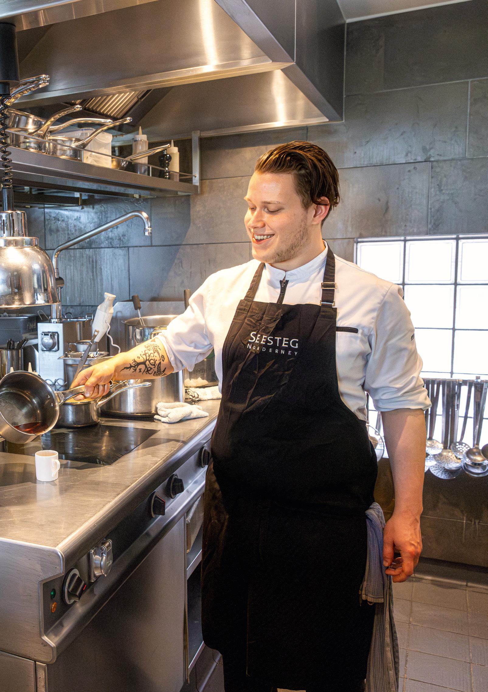 können wir nicht genug bekommen vom trockenen Humor und der Selbstironie vieler Ostfriesen. Zuvor ergreift Nelson Müller das Wort, um das Konzept seines neuen Norderneyer Restaurants vorzustellen. Man schaut nicht hinter die Stirn, aber es klingt, als würde ihm Norderney ziemlich gut gefallen. "Für mich war Müllers immer ein Thema abseits der Sternegastronomie", erklärt der Starkoch. "Stattdessen eine Art Wohnzimmerküche, die man jeden Tag essen mag, die einem gut tut. Unkompliziert, Top-Qualität, auch guter Service, aber irgendwie easy. Genau das ist es, was wir hier machen wollen."