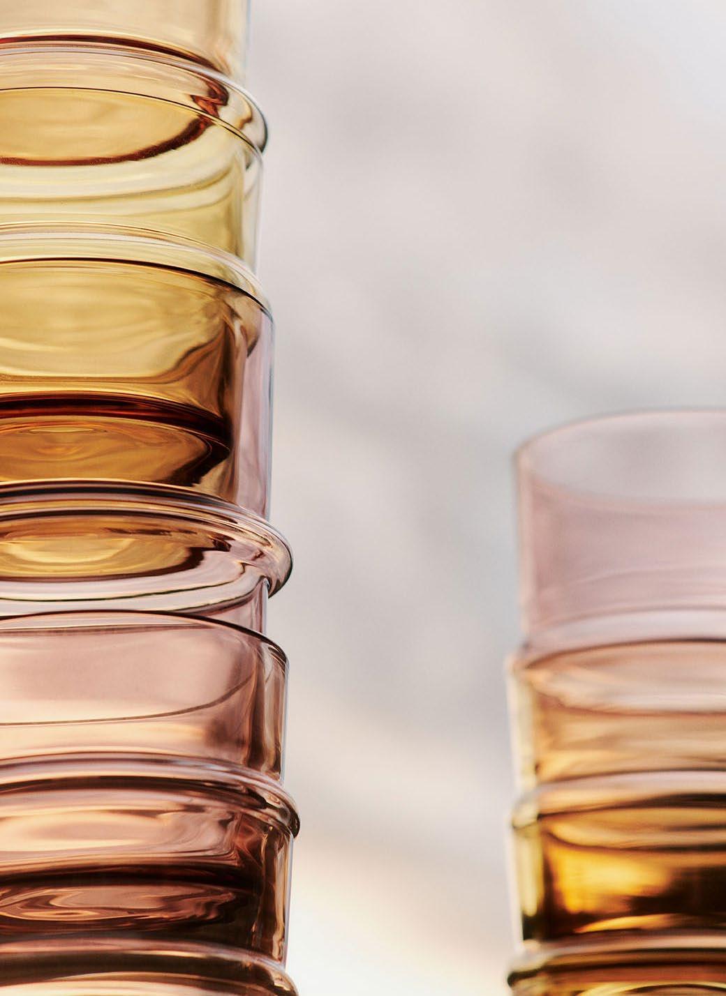 The Muro Series takes its name from the Spanish word for ‘wall,’ referencing its architectural origins and connection to Utzon’s Can Lis. This trio of mouth-blown recycled glass vases, each with distinct dimensions and forms, draws inspiration from the texture and structure of bricks. Shaped using moulds from actual bricks, the vases embody subtle architectural nuances, while the hand-blown process imparts an artisanal character to each piece.