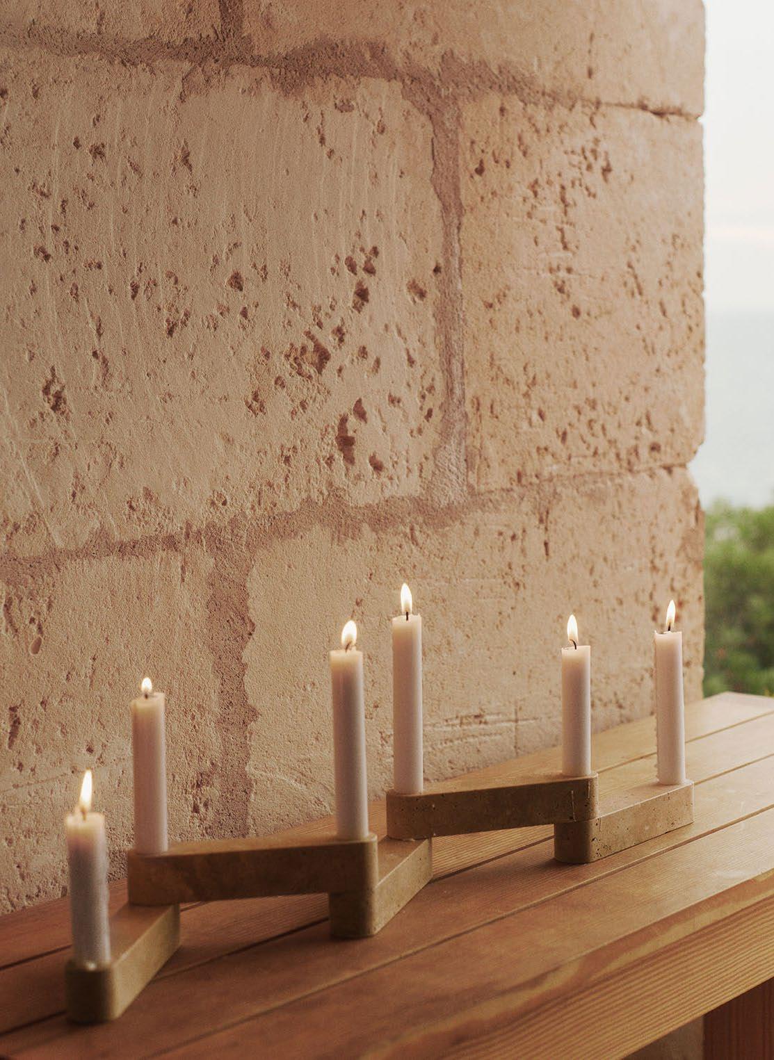 The Newel Modular Candle Holder Set draws inspiration from the architectural language of Can Lis, where brickwork serves as both structure and a distinctive signature. Comprising six units, the set references the modularity and adaptability of bricks, inviting users to create varied compositions. These sculptural candle holders invite a sense of warmth and architectural refinement into living spaces.