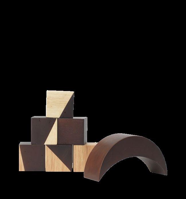 The Phase Mobile offers a playful reimagining of this motif. It allows the symbol to be brought into the domestic setting, serving as both a memento of Can Lis and a gesture of play. Similarly, the Phase Building Blocks, a set of children’s building toys, extend this sense of engagement and creativity. Crafted from two contrasting finishes of FSC™-certified wood, these blocks invite users to engage with the motif in new ways, further celebrating the dialogue between structure and playfulness that characterises Can Lis.