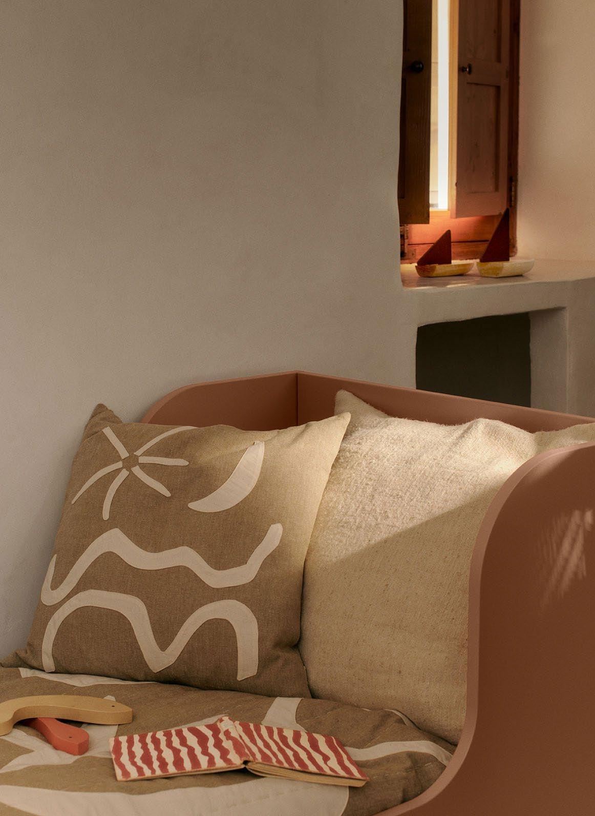 The Kove Series embodies the serene beauty of Mediterranean coastlines. Featuring chambray textures and hand-stitched appliqué, the cushions and quilted blankets capture the rhythmic flow of waves and celestial forms. Designed for both elegance and comfort, these pieces bring a touch of coastal tranquillity to any space.
