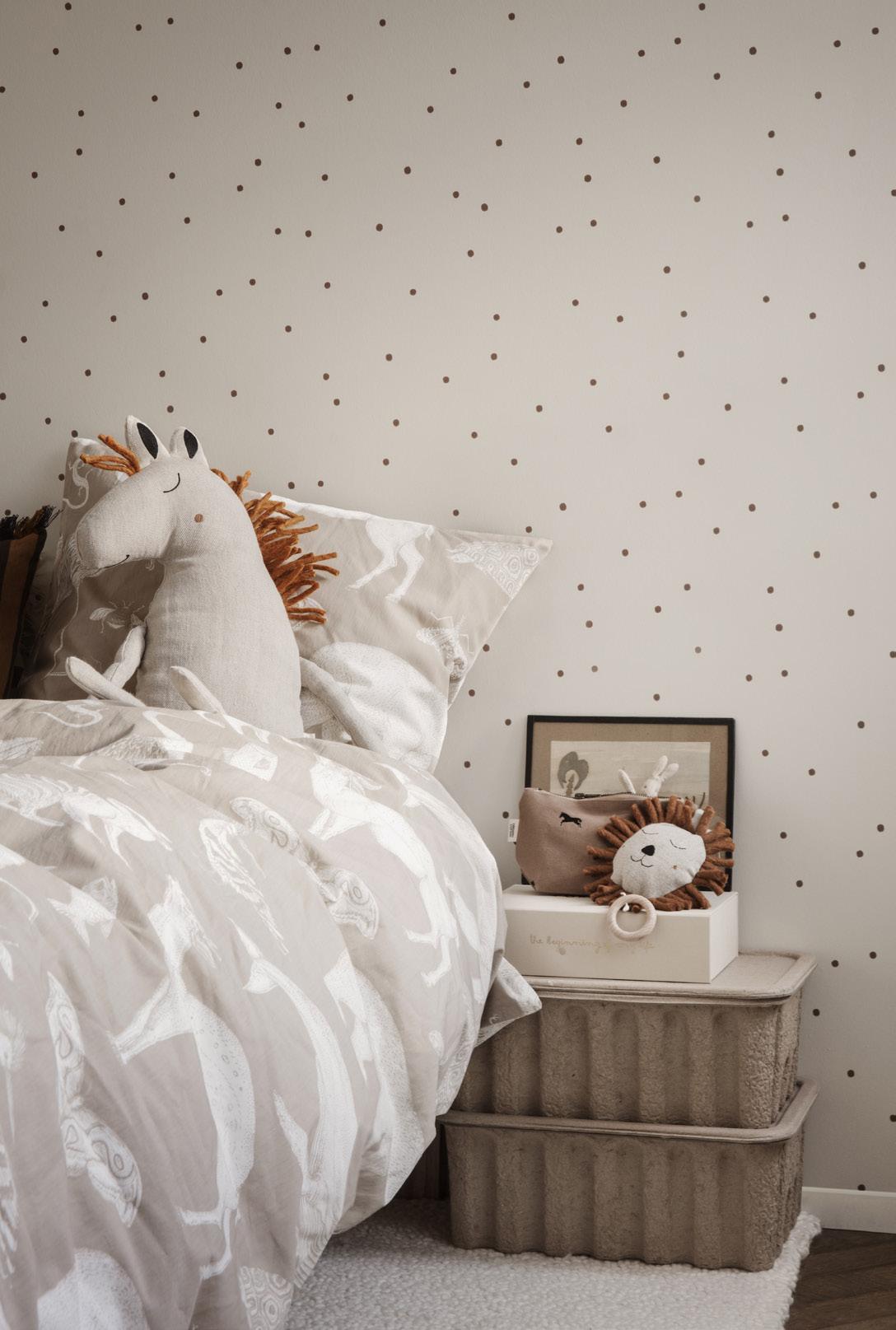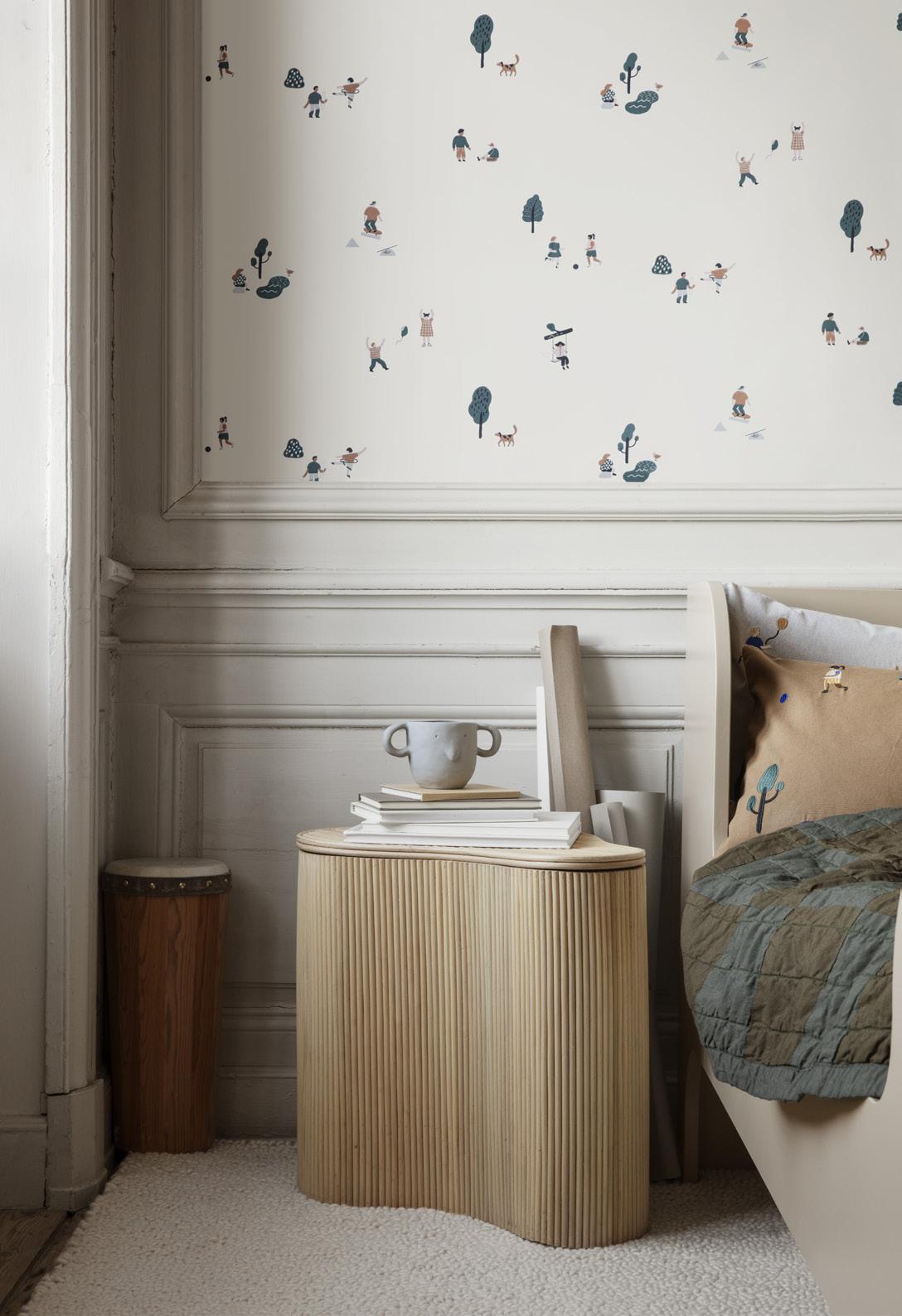 All ferm LIVING wallpaper is printed on FSCTMcertified, non-woven wallpaper with water-based ink, making them especially durable and easy to hang. Simply apply a paste suitable for non-woven wallpaper directly on the wall and make sure to seal the edges of the paper tightly. Because our wallpapers are made with water-based colours, they are environmentally friendly and of good quality with a weight of 150 grams. As the colours are blended by hand, there may be slight colour differences in the different batches, so make sure you purchase rolls from the same batch. To clean the wallpapers, wipe gently with a damp cloth.