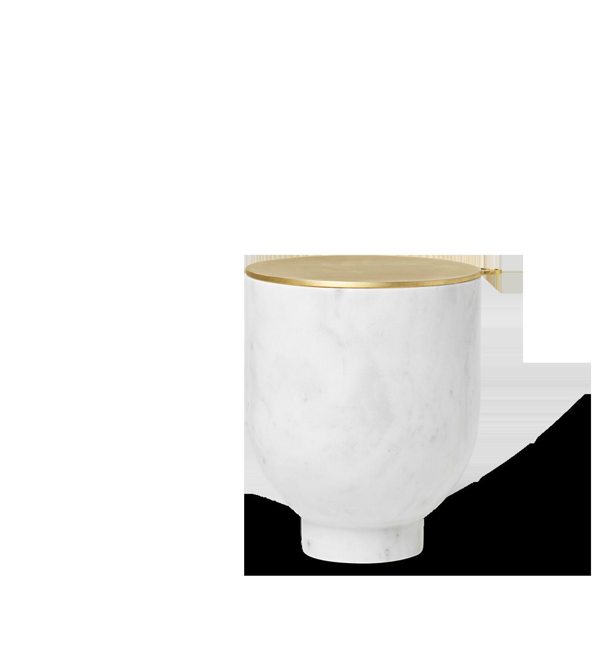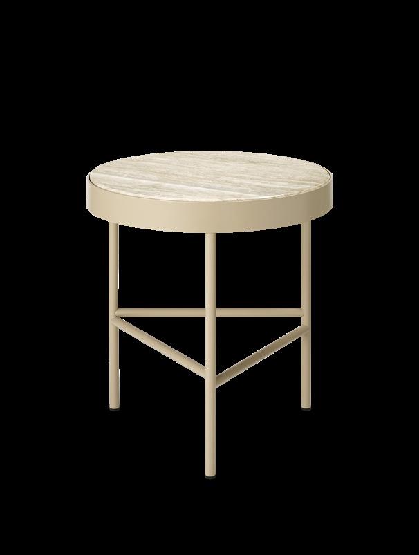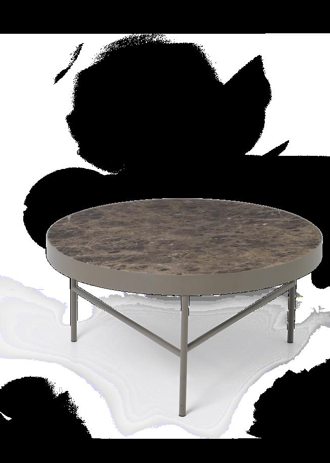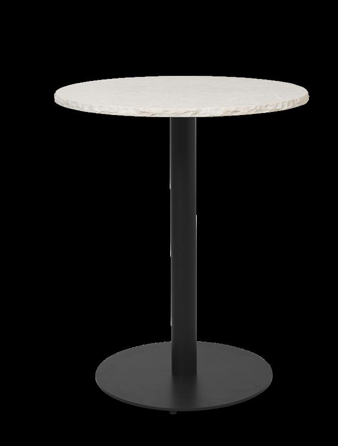 Material: Table top: Brushed Bianco Curia marble. Base: Black powder coated galvanized steel Care: Wipe with a damp cloth. Do not leave the surface wet Info: As the rough edges are hand-made with a chisel, every table is unique. The leathered marble surface is treated with a diamond-tipped brush making it resistant to water marks. The galvanized base is resistant to rust