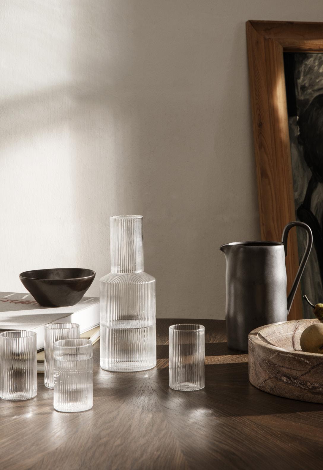Because our glasses are handmade and mouthblown, no two glasses are exactly the same. Therefore, slight variations in size and form may occur. All of our glass tableware is dishwasher safe. We always aim for a thin and light expression in our glasses, so even though all glass is dishwasher safe, we suggest handling them with care and stack carefully in the dishwasher. The remaining soda lime and borosilicate glass items should be washed by hand.