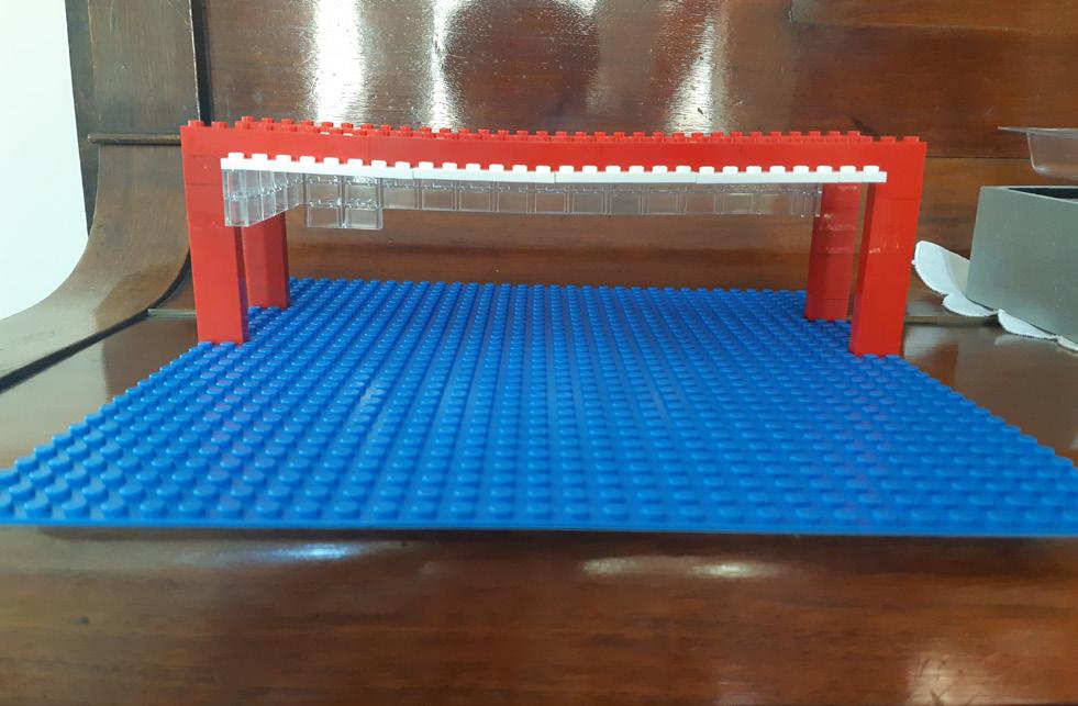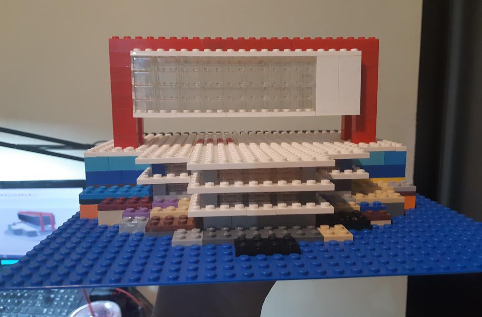 Figura 32. Primeira tentativa do modelo físico do MASP em peças de LEGO. (Fonte: Acervo pessoal).