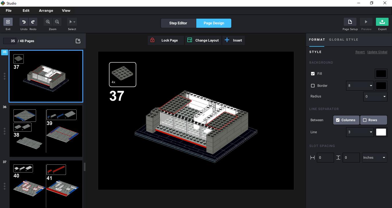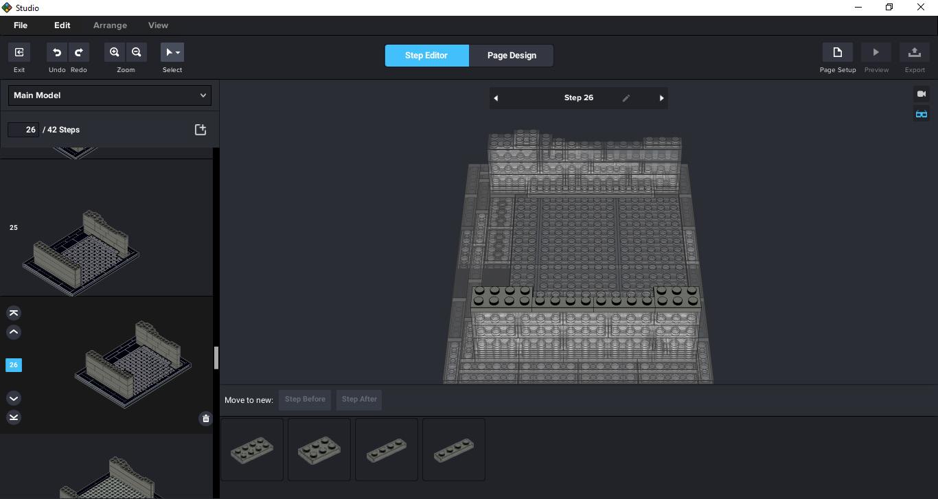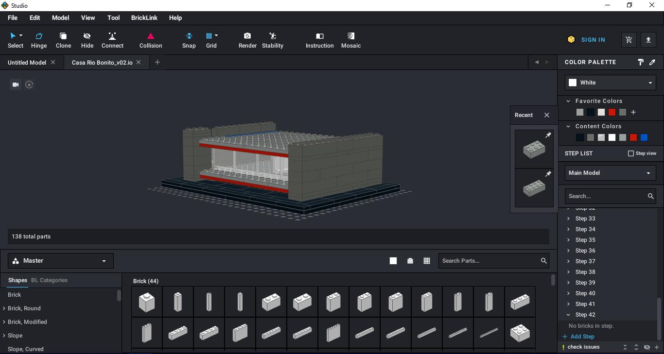 Figura 38. Captura de tela da etapa de edição do passo a passo da Casa Rio Bonito no programa BrickLink Studio. (Captura em 2020).