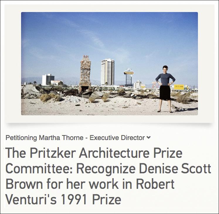 Figura 18. Capa da petição pela inclusão de Denise Scott Brown no Prêmio Pritzker de 1991. (Fonte: Places Journal).