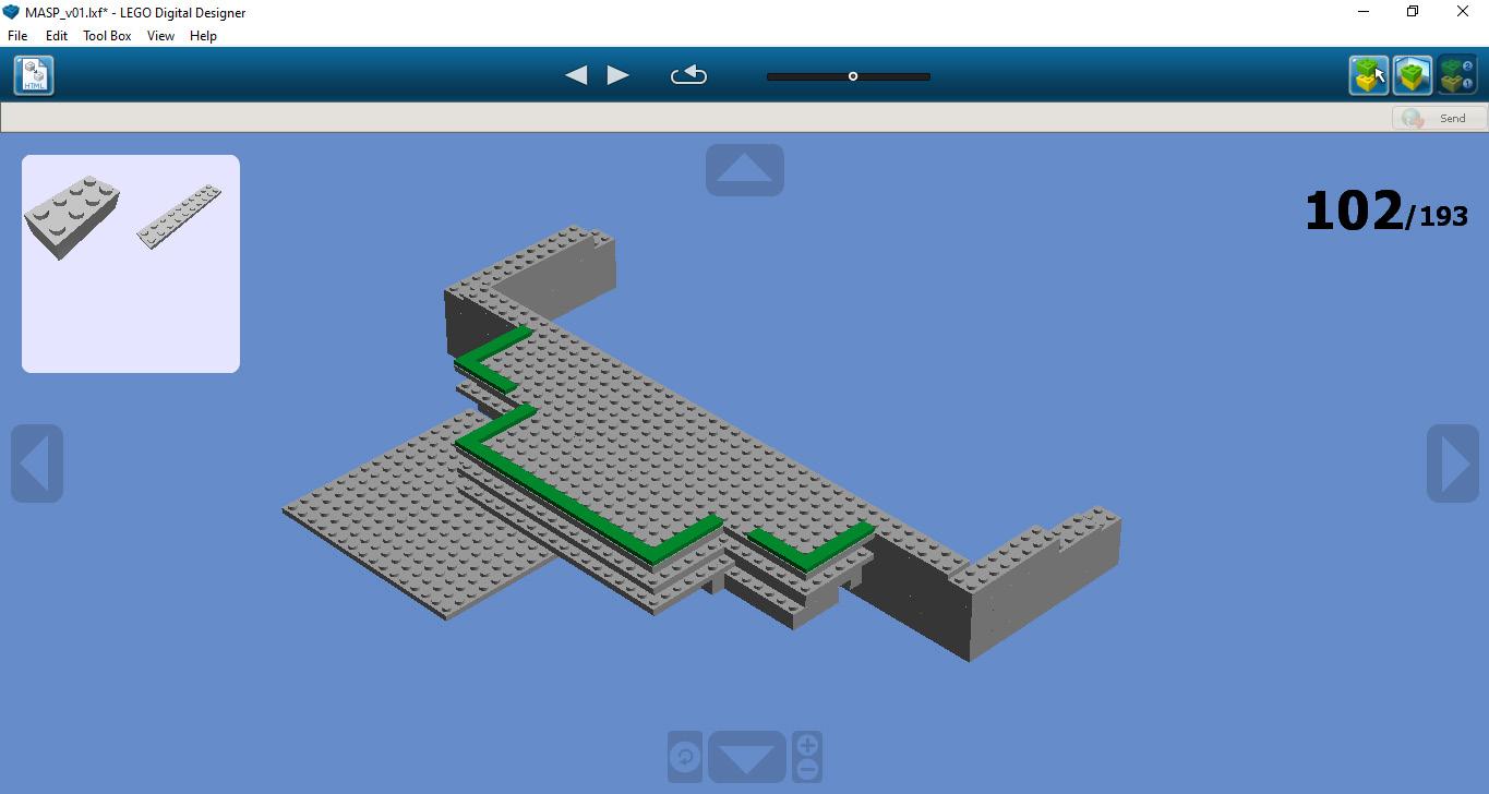 Figura 35. Captura de tela da etapa de passo a passo de montagem do programa LEGO Digital Designer. (Captura em 2020).