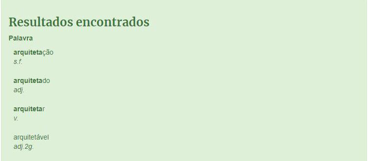 Figura 47. Captura de tela do site da Academia Brasileira de Letras, buscando a palavra “arquiteta”. (Capturado em 2020).