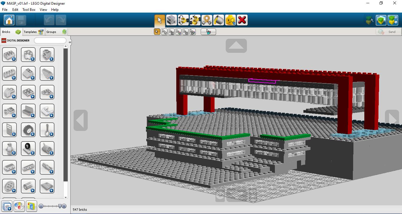Figura 34. Captura de tela da primeira tentativa de construção do modelo do MASP no programa LEGO Digital Designer. (Capturado em 2020).