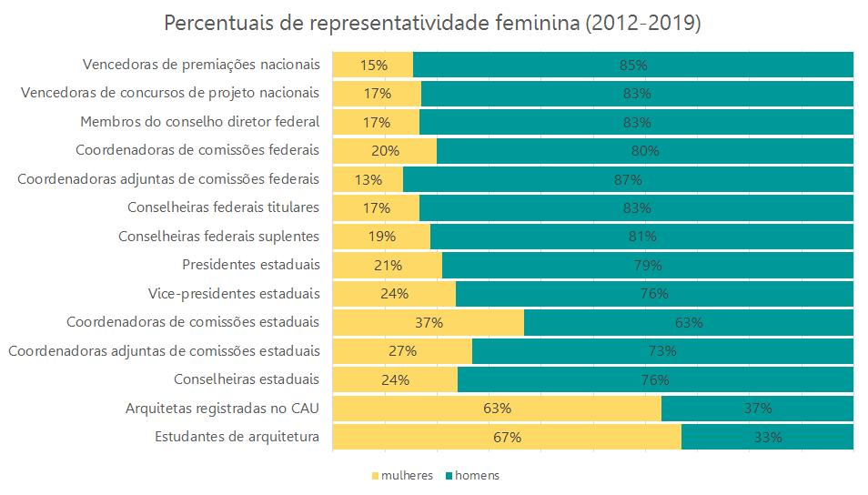 Figura 15. Tabela do CAU sobre representatividade feminina na arquitetura. (Fonte: CAU-BR, 2019).