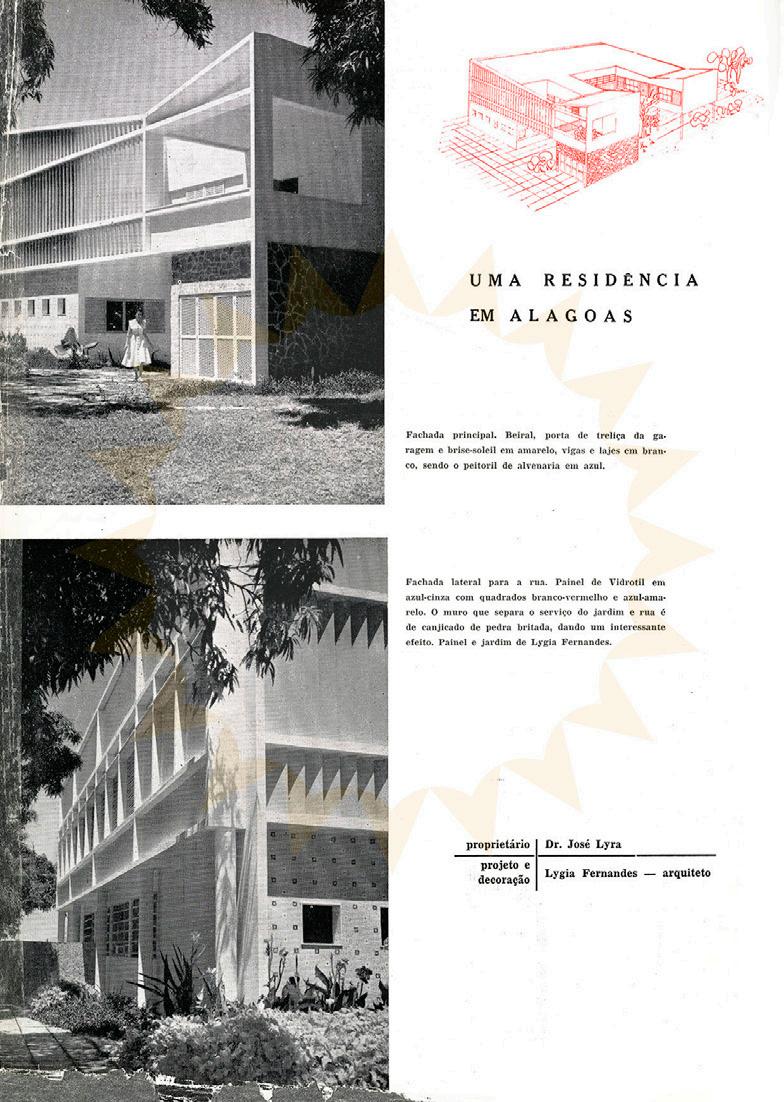 Construída entre 1952 e 1954, essa obra pode ser considerada como uma consolidação de alguns trabalhos de Lygia no nordeste brasileiro (Maceió, Alagoas). O projeto foi implantado em um terreno sinuoso com jardim amplo de plantas tropicais, que ocupam terraços e áreas livres da residência.
