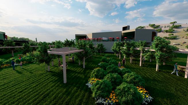 Con vistas y escenarios dirigidos a apreciar el paisaje que rematan con la Peña de Bernal, el hotel se organiza en varios niveles; donde en el nivel mas bajo se desarrolla la mayor parte de la actividad social, como su zona nutrivinicola y espacios recreativos, mientras que en la zona de habitáculos, va incrementando el nivel de las plataformas, para que así, todas las habitaciones puedan gozar de la vista hacia el monolito.