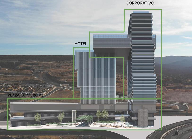 El proyecto se dividió en diferentes áreas, las cuales son: Hotel, Corporativo y Plaza comercial.