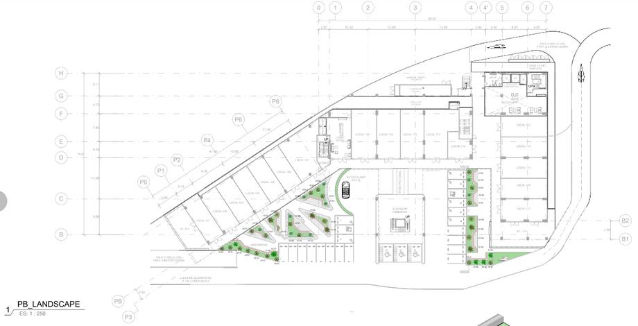 Para el proceso de elaboración de los detalles de jardinería, se comenzó incluyendo cada uno de los materiales, especificando su grosor, descripción y representación física de las capas mencionadas en las jardineras frontales de la plaza comercial a nivel de planta baja.