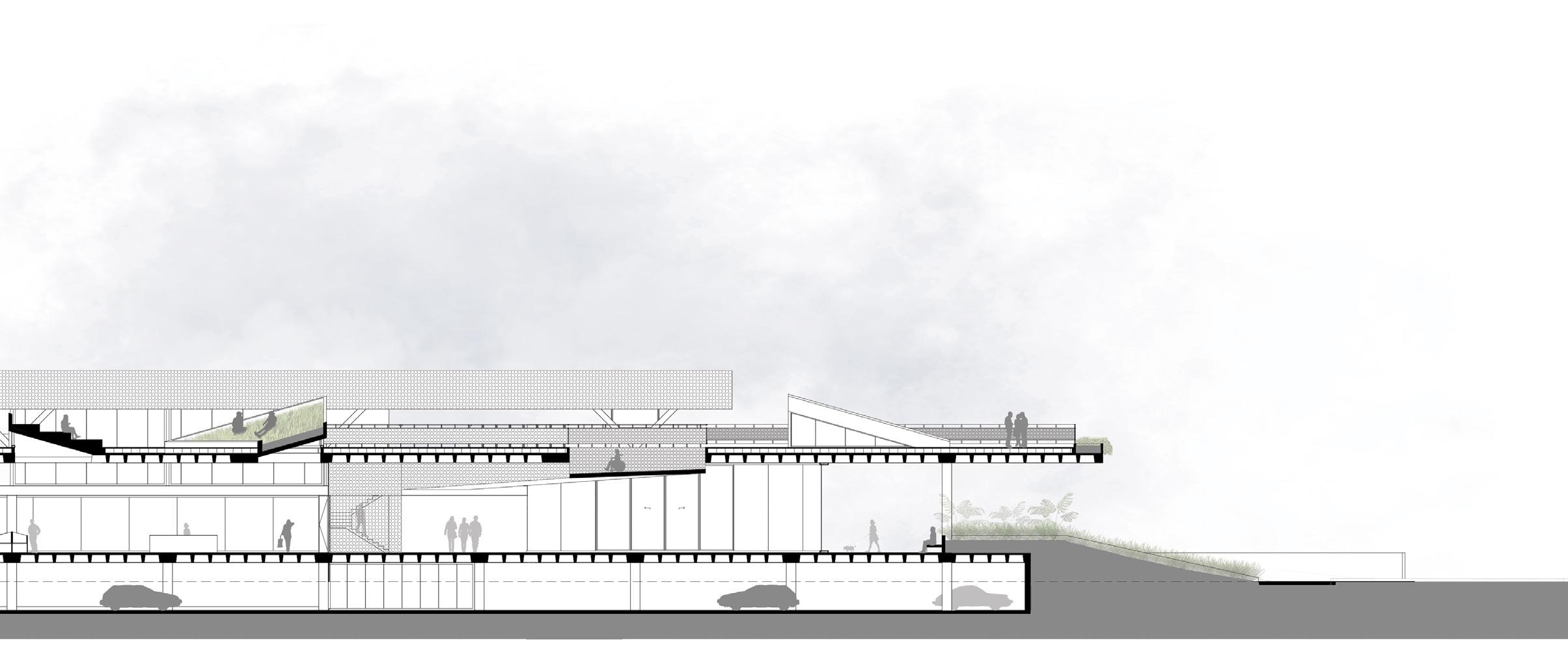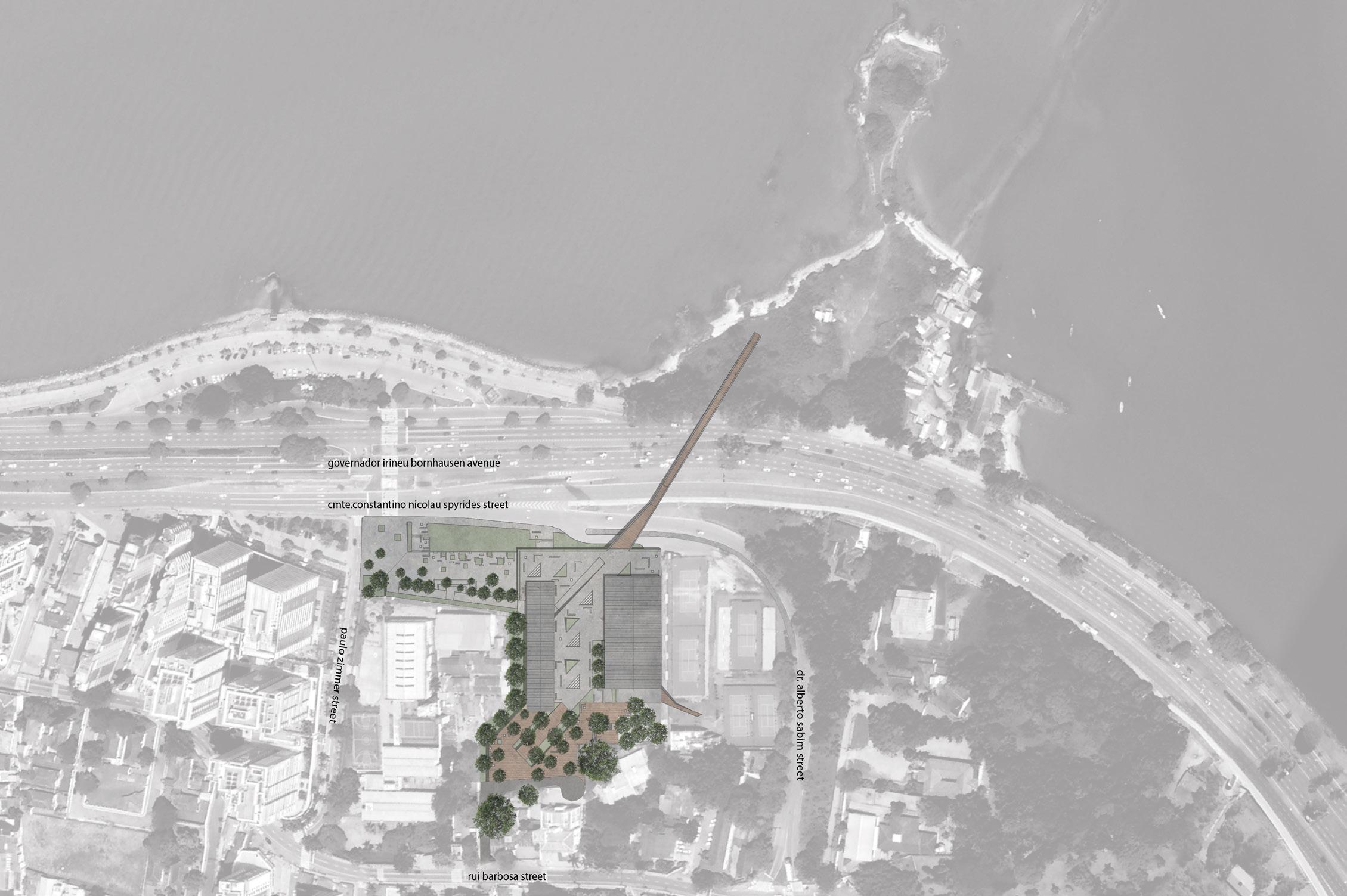 New levels were created to organize uses, highlight views, and promote better public connections. Each floor of the building addresses a different area of public life and reinforces permanence, views and connections that are always open and public, becoming an antithesis to the elitist, verticalized and privatized shore of Florianópolis. This project seeks a fairer and more democratic city that allows people to access different experiences through nature and the built environment.
