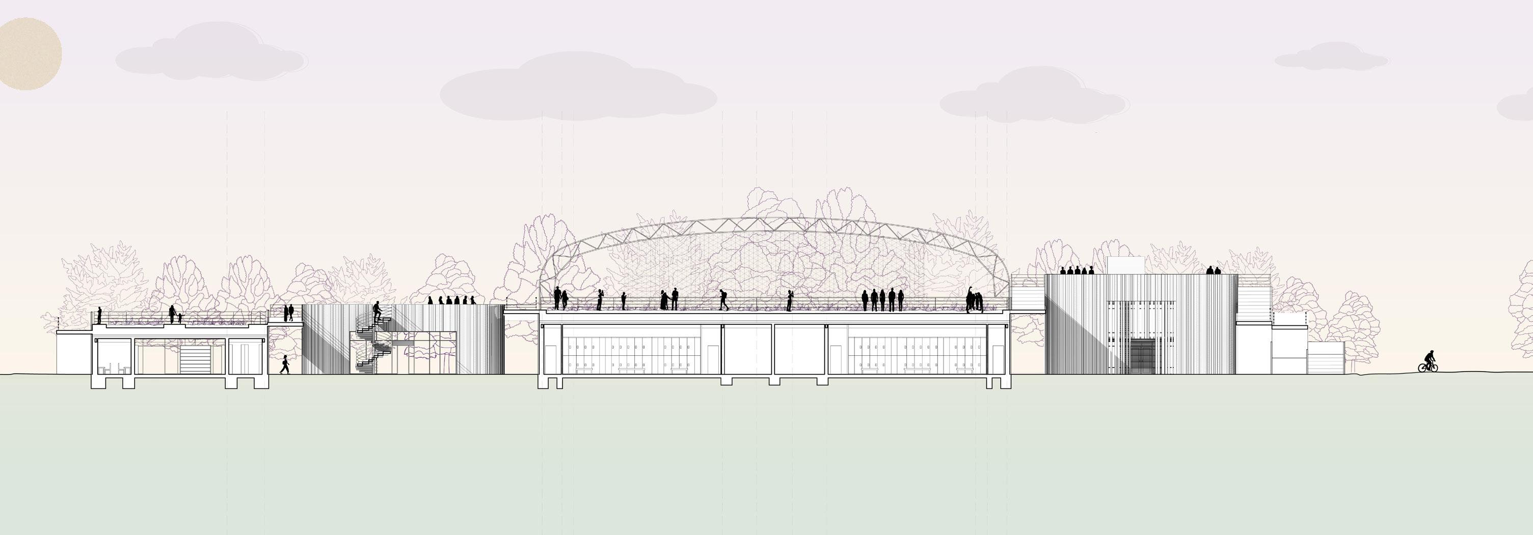 Step 3: Final touch of adding the curved roof that connects all the spaces together as well as creating shading