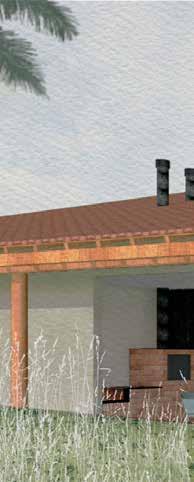Devido ao clima quente da região, propõe-se um pergolado a fim de reduzir a incidência do sol sobre a fachada oeste e uma ventilação zenital para melhorar a circulação de ar nos ambientes de permanência.