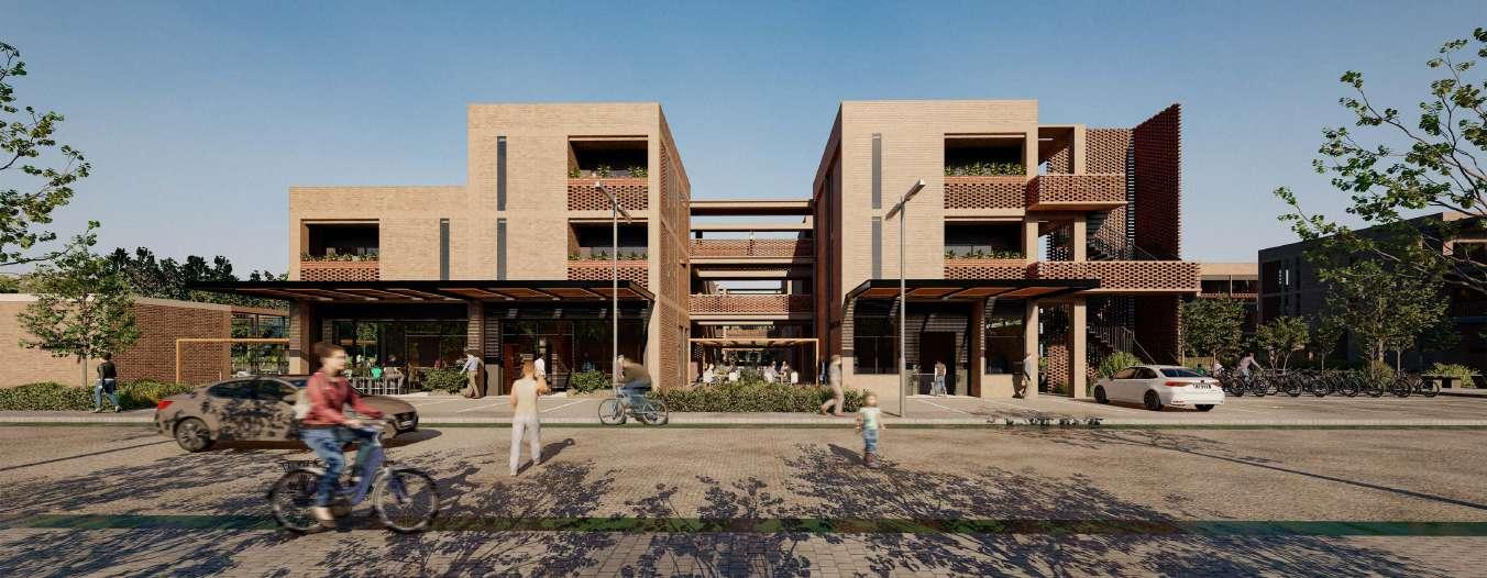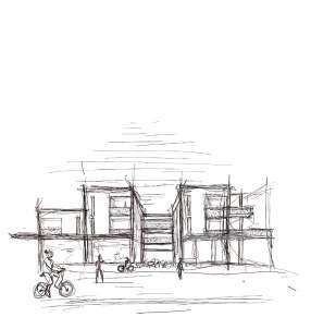 El bloque se divide en dos edificios, creando un patio interior para mejorar la ventilación e iluminación natural.