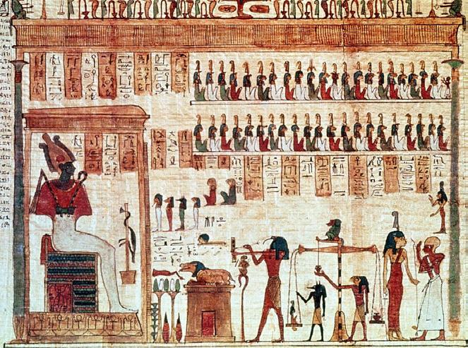 El dios Osiris supervisa el tribunal donde se lleva a cabo el juicio de las almas.
