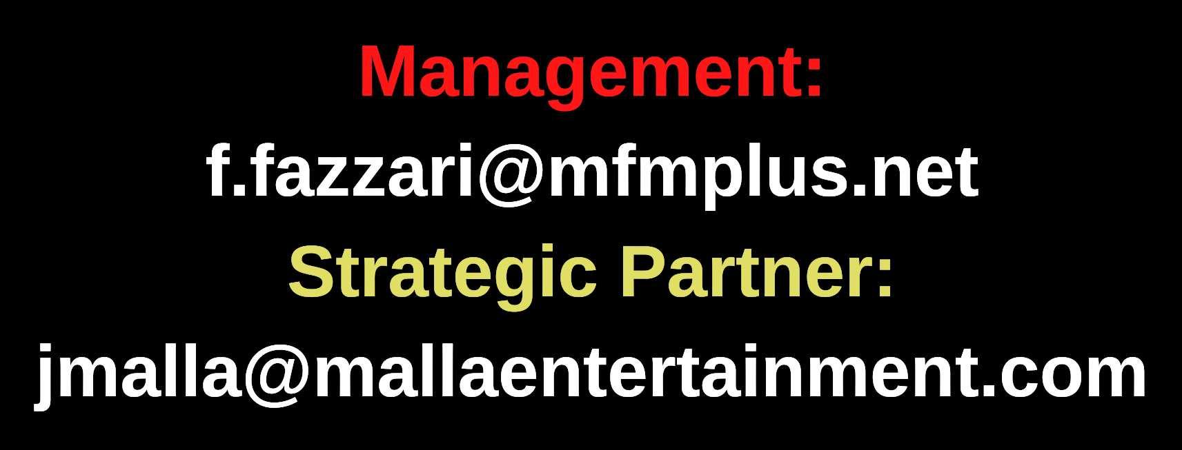 Digital Marketing Digital Marketing Maffs Campos Maffs Campos mf.campos@mfmplus.net mf.campos@mfmplus.net Karla Palacios Karla Palacios kk.palacios@mfmplus.net .palacios@mfmplus.net PR and Media PR and Media Vicente Carcaño Vicente Carcaño vv.carcano@mfmplus.net .carcano@mfmplus.net Web Master Web Master Mauricio Aziz Tonder Mauricio Aziz Tonder m.aziz@mfmplus.net m.aziz@mfmplus.net Contactos Contactos ROSTER ROSTER