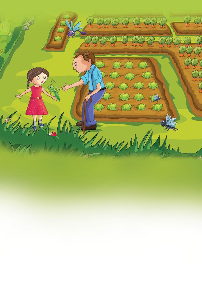 “What’s all the fuss?” her grandfather enquired. “Yuck! There are so many nasty critters all over our vegetables. I’m afraid to pick any for dinner tonight. Let’s just start to squish them. Yikes, bad bug, bad bug, get off me.”