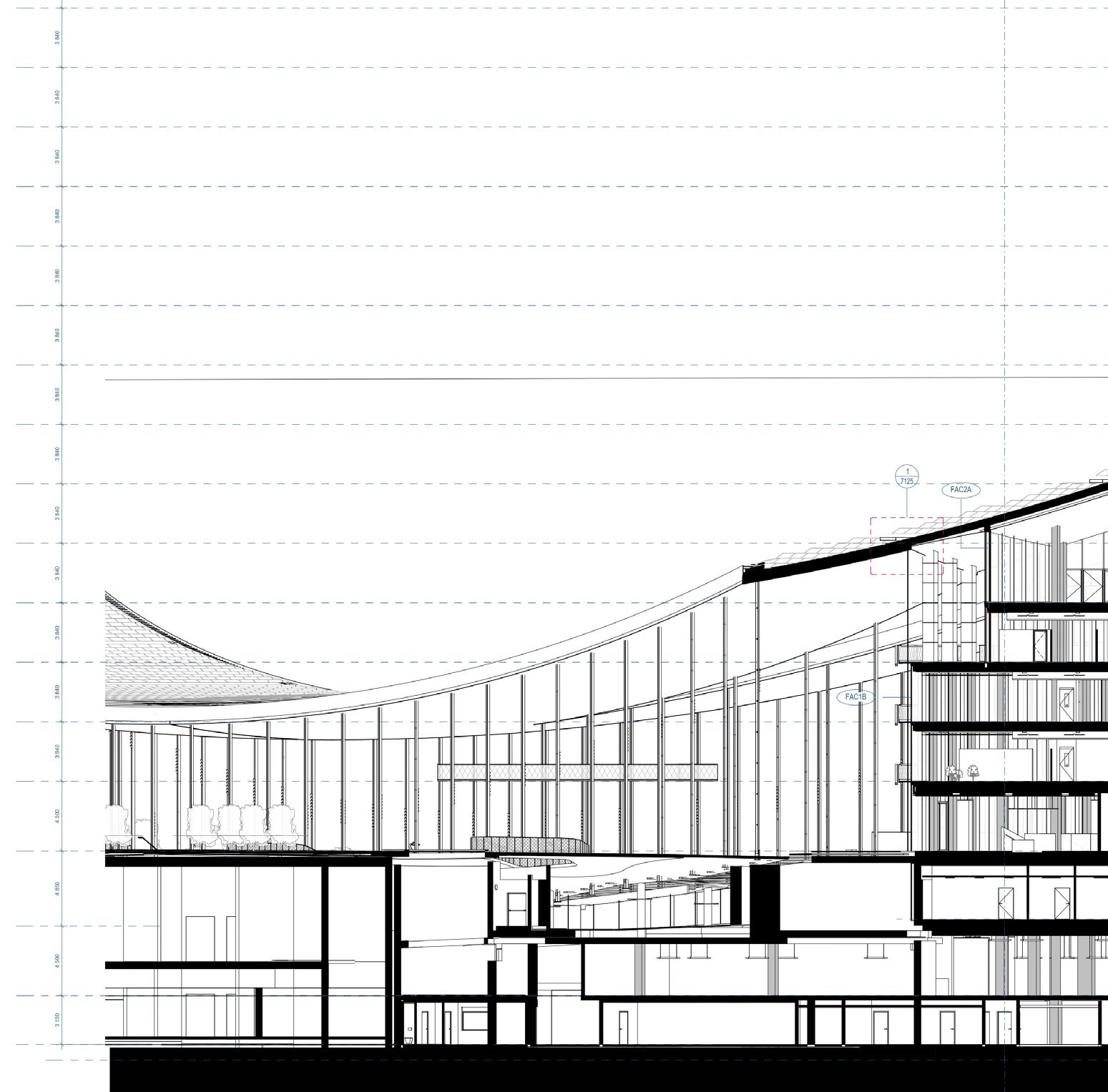 new open spaces disclose a hierarchical organization of functions according to their accessibility to the public, characterizing the low-rise building as a volume completely “open” to the city, and allowing for progressive privatization on the powerful vertical volume.