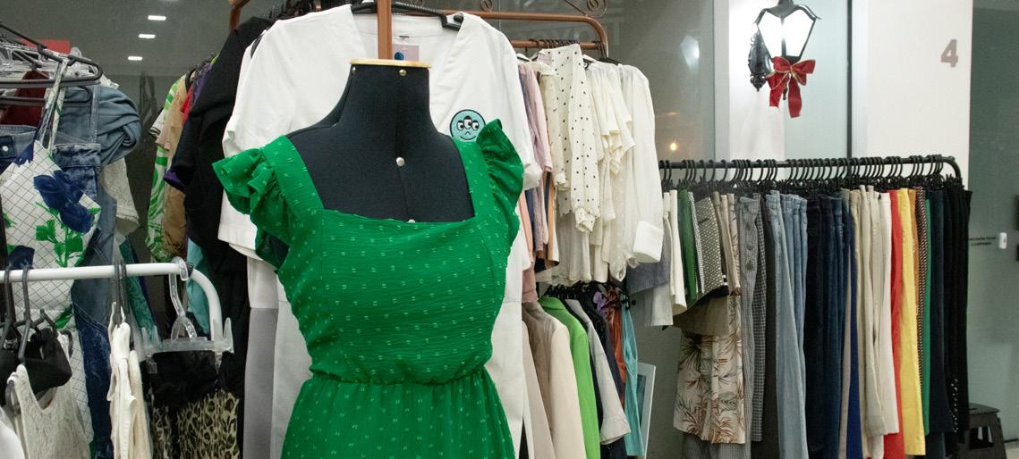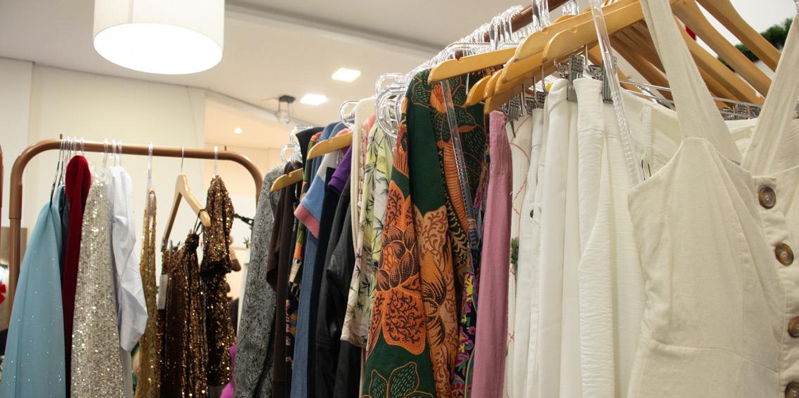 além da venda de roupas, promovendo moda e consciência de forma integrada. A edição primavera/ verão aposta em estampas coloridas e peças leves, convidando os visitantes a expressarem sua identidade com liberdade. “Aqui, a moda é diversa, acessível e autêntica. Cada pessoa pode escolher peças que combinem com seu estilo e bolso”, afirma Gabriela Feola, idealizadora do projeto. A programação do evento oferece experiên-