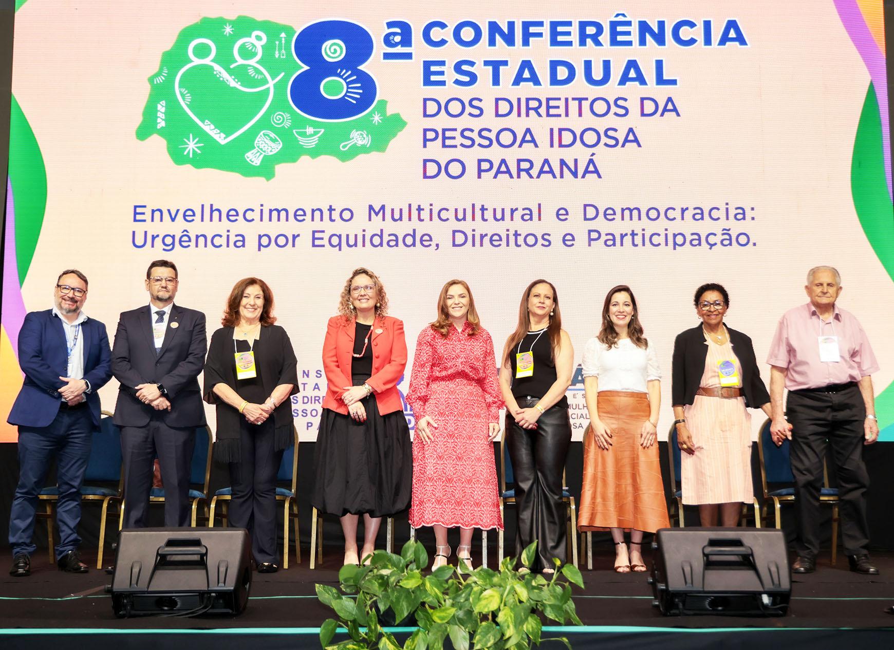de, Direitos e Participação”. Durante os três dias de programação, foram promovidos debates e painéis sobre políticas públicas, inclusão social, saúde, educação, assistência social e valorização da participação cidadã da população idosa. A conferência também serviu para troca de experiências entre municípios e organizações, apresentando ações bem-sucedidas que têm transformado a vida de pessoas idosas em diferentes regiões do Paraná. Um dos destaques do