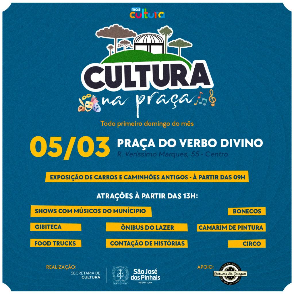 A Secretaria de Cultura de São José dos Pinhais irá promover todo primeiro domingo de cada mês a ação Cultura na Praça, e neste final de semana acontece a primeira.