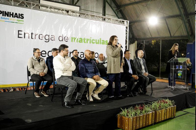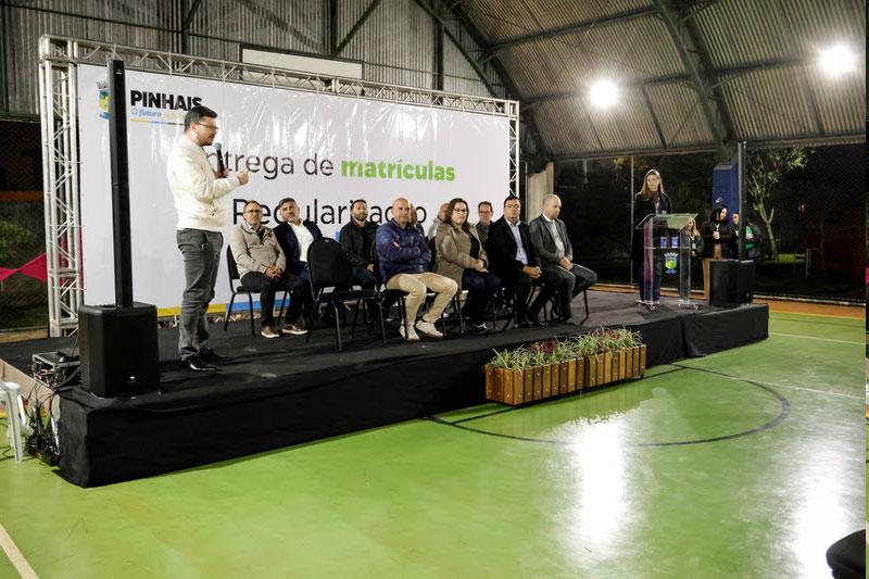 A noite da quinta-feira (25/9/2025) marcou a história de pelo menos 28 famílias no bairro Weissópolis em Pinhais. Elas receberam, após mais de dez anos de espera e desafios, os títulos de propriedade dos imóveis onde residem, na chamada área da Quadra 81, originalmente pertencente à empresa Argovia. A cerimônia foi realizada na quadra da Escola Municipal Professora Thereza Corrêa Machado, na presença dos oficialmente proprietários, autoridades e comunidade em geral. A entrega das matrículas resultou de esforços da Prefeitura de Pinhais, por meio da Procuradoria-Geral do Município (Proge) e Secretaria Municipal de Urbanismo (Semur), em parceria com o Cartório de Registro de Imóveis da Comarca de Pinhais e da empresa LHR Amaral Cia Ltda - Henrique Imóvel Legal.