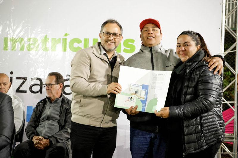 envolvidas no processo. “Temos uma coisa chamada vontade política. Vontade política de fazer, de entregar dignidade para as pessoas. Porque ter o título é dormir tranquilo. Eu sei que vocês aguardaram por muito tempo. As famílias acreditaram. Agradeço muito as nossas equipes. Muitos atores fizeram parte desse movimento, e estamos muito felizes. É a nossa obrigação enquanto poder público fazer o nosso melhor para que vocês recebam aquilo que é de direito. Agora a notícia é muito boa, vocês receberam o título, livre de qualquer tipo de pendência,