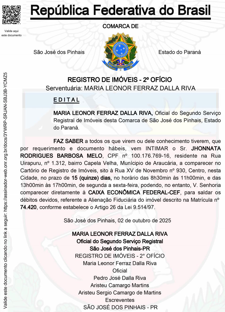 que faz de vocês proprietários legítimos. E isso vai valorizar muito o seu imóvel”, declarou. O oficial de Registro de Imóveis de Pinhais, José Eduardo de Moraes, destacou a segurança jurídica que as famílias agora gozam. “O município, cumprindo o dever dele, resolve a vida de muitas pessoas, aqui nós temos 28 famílias, nós tivemos quase 300 na Vila Perdizes, e muitas outras virão. Então, o meu papel, logicamente, é ajudar a resolver o problema que estava presente no município há muito tempo, mas aqui temos pessoas que resolveram o