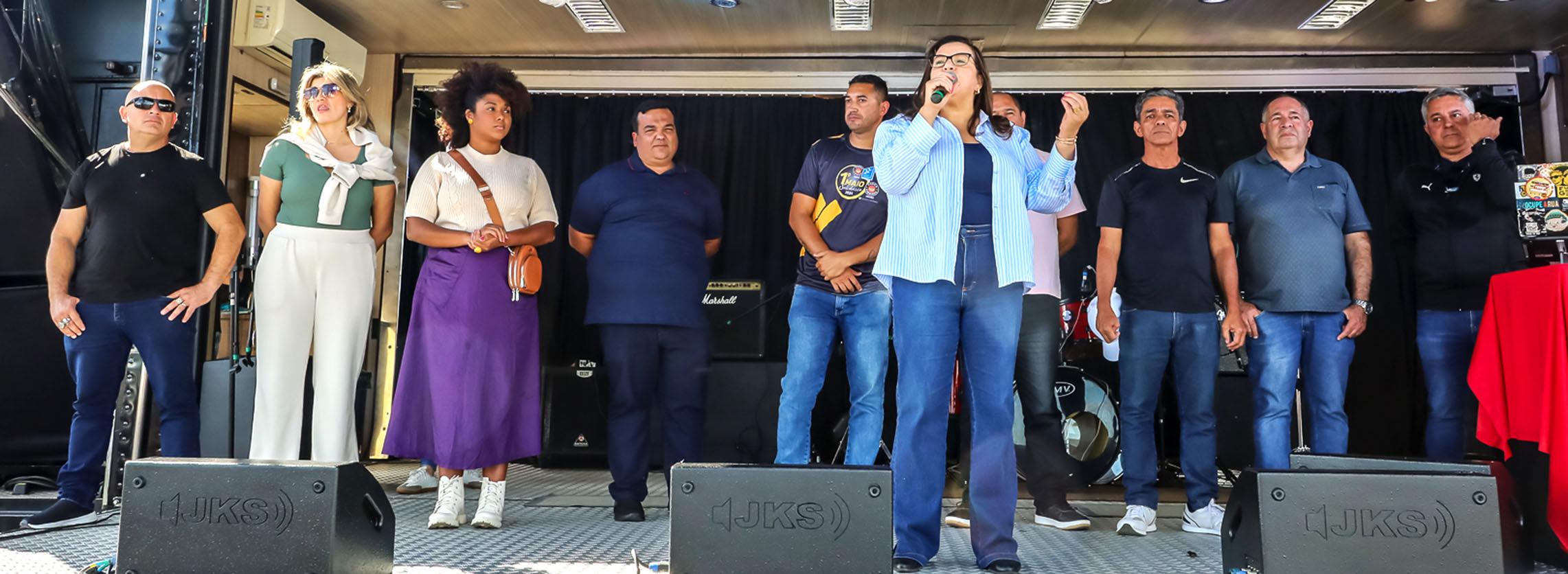 de Saúde, Adriane da Silva Jorge Carvalho; de Educação, Rosangela Batista Duarte e de Governo, Ana Paula Cordeiro Mendes. Representando o legislativo municipal, as vereadoras Miss Preta e Professora Haline Siroti e os vereadores Amarildo Amaral e Sargento Almeida.