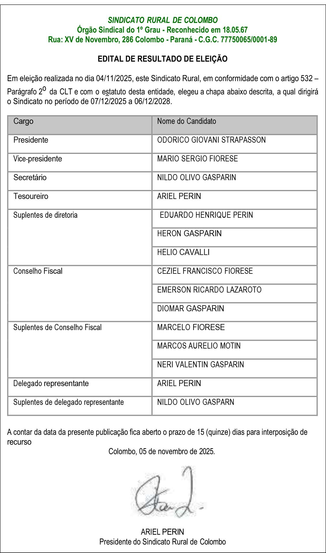 As entidades interessadas devem protocolar a documentação exigida até o dia 15 de novembro de 2025, na sede da Prefeitura (Rua Passos de Oliveira, 1101 – Centro). O resultado do credenciamento será divulgado até o dia 30 de novembro de 2025.