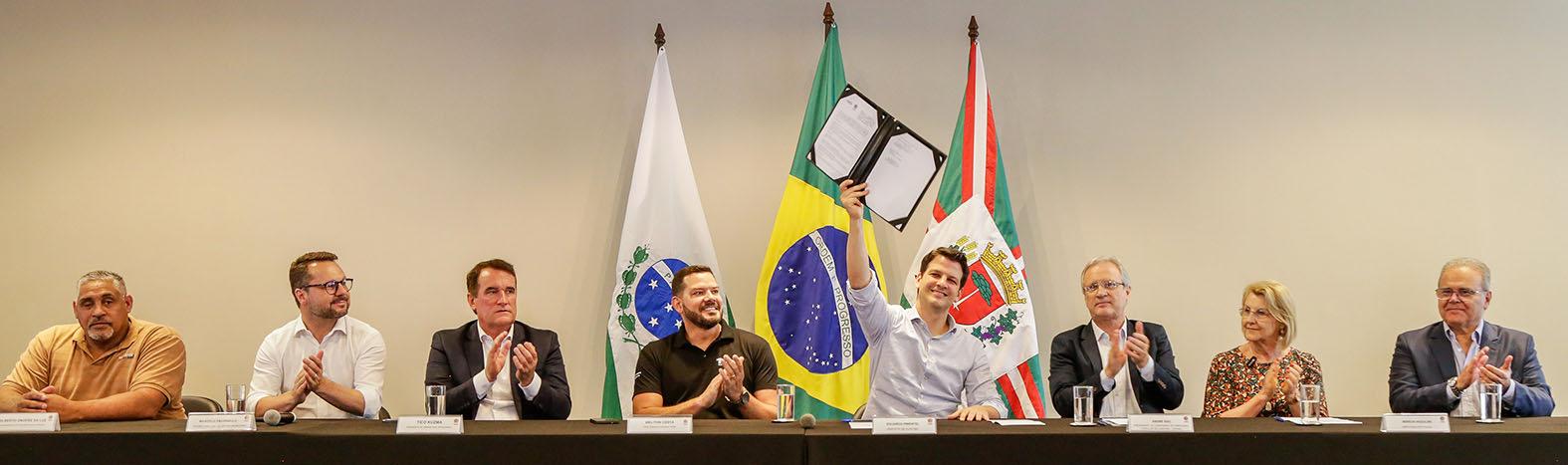 Prefeito Eduardo Pimentel, com o presidente da Cohab, André Baú, assina o lançamento do empreendimento Residencial Estação Bordignon