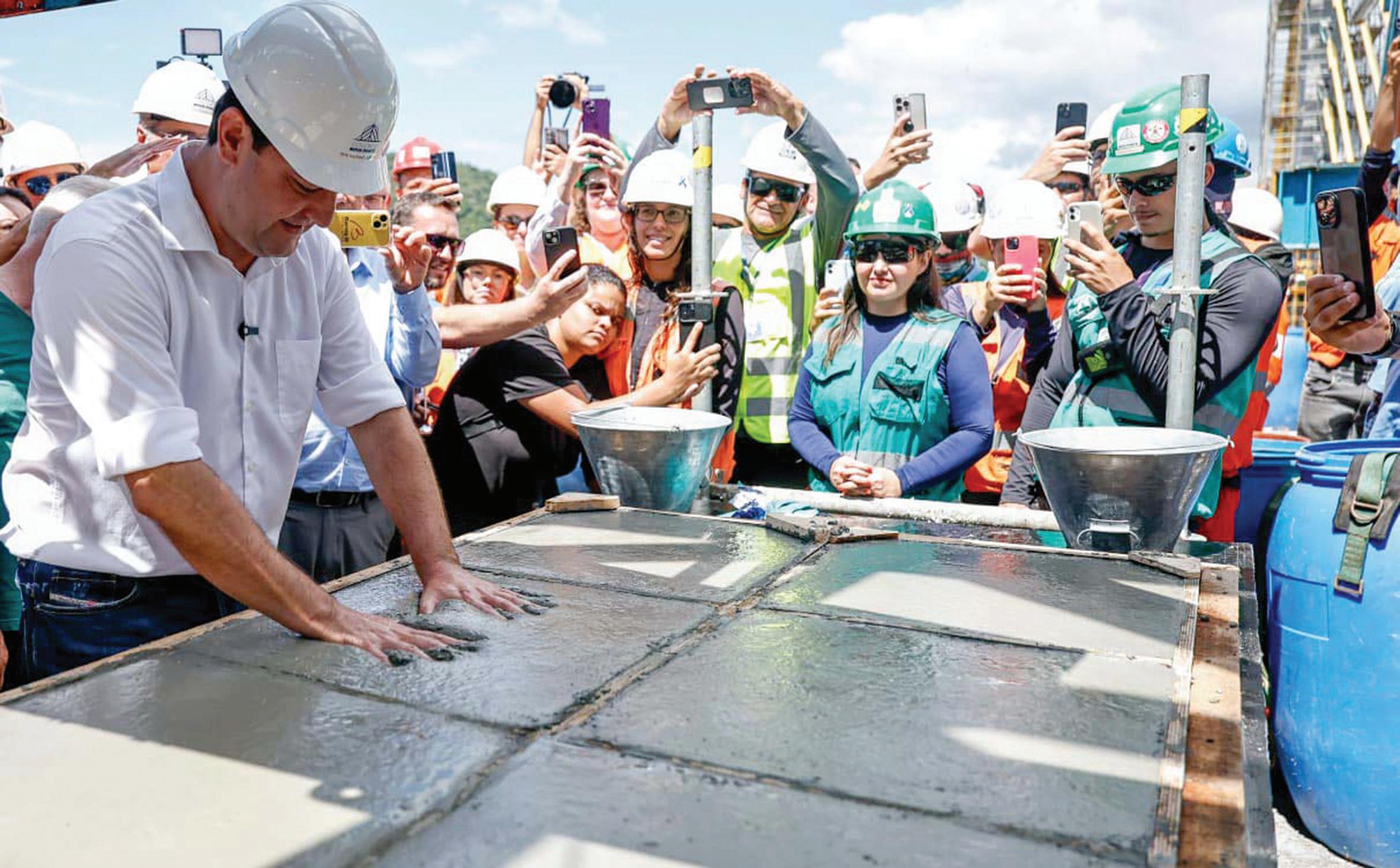 O governador Carlos Massa Ratinho Junior visitou a obra na manhã desta sexta-feira (6) e ajudou a concretar o último metro cúbico que faltava. Foto: Jonathan Campos/AEN