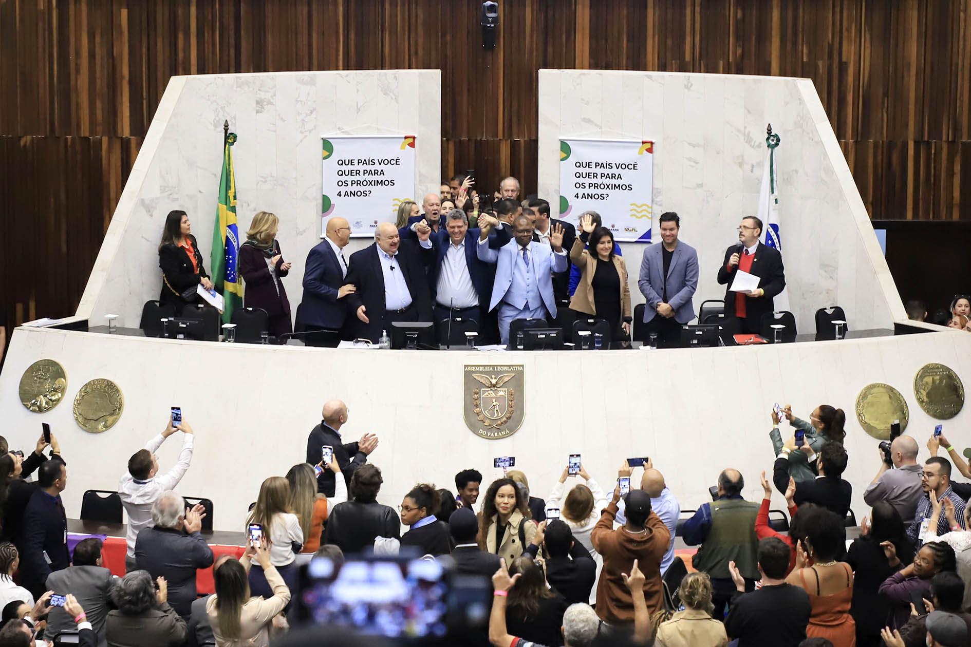 O prefeito de Curitiba, Rafael Greca, defendeu amplo suporte de recursos do governo federal às cidades brasileiras, ao discursar na plenária Estadual de discussão e participação popular do Plano Plurianual Participativo do Governo Federal, nesta sexta-feira, na Assembleia Legislativa do Paraná (Alep). Ele estava ao lado da ministra do Planejamento, Simone Tebet, e dos ministros de Direitos Humanos e Cidadania, Silvio Almeida, e da Secretaria-geral da Presidência da República, Márcio Macedo. “O Brasil é feito a partir das cidades brasileiras, que são a máquina da igualdade social”, afirmou o prefeito curitibano, ao saudar os representantes dos movimentos sociais que lotaram o plenário.