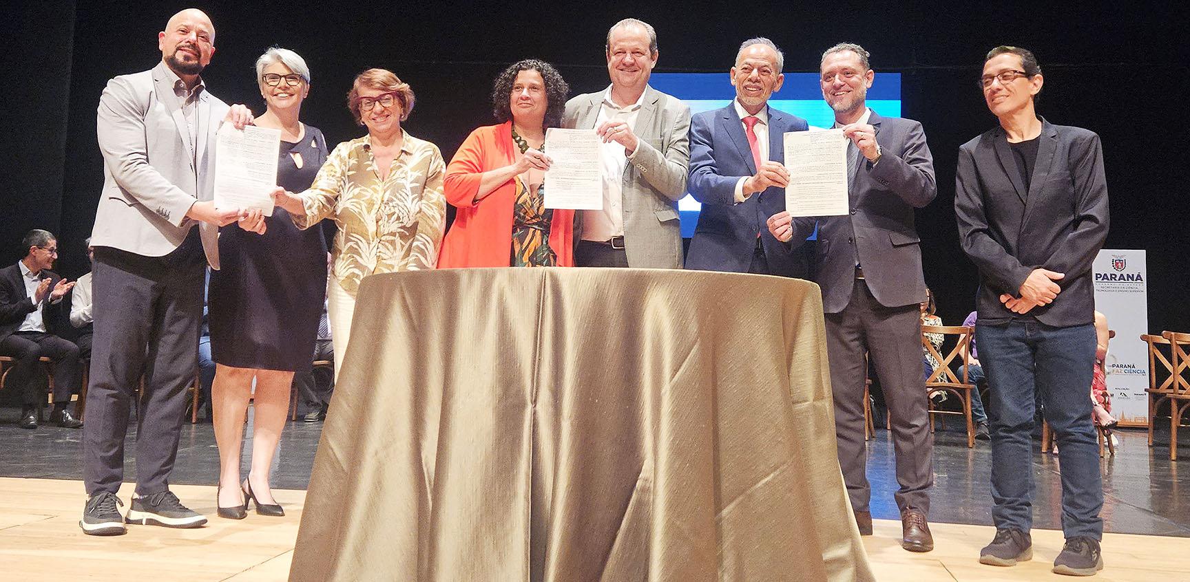 “O Paraná, neste momento, é destaque na ciência no Brasil. Além disso, o Estado não mede esforços para angariar parcerias e investimentos para a CT&I, exemplo disso é o acordo que acabamos de assinar com a Araucária. Para o MCTI é um orgulho fazer parte disso e aproveito a oportunidade para parabenizar a todos os envolvidos na organização desta iniciativa que é a Semana Paraná Faz Ciência”, ressaltou o secretário de Ciência e Tecnologia para o Desenvolvimento Social do Ministério da Ciência, Tecnologia e Inovação, Inácio Arruda. LIVRO E PRIME A solenidade de abertura também contou com o lançamento do livro “Integração Entre Teoria e Prática: o caso do programa Restec no estado do Paraná", do Programa de Residência Técnica em Gestão Pública, organizado pela professora Eliane Rauski que também é coordenadora dessa Restec. Por fim, foram anunciados os finalistas do Prime 2024 que receberam R$ 200 mil cada para investir no desenvolvimento de suas pesquisas.